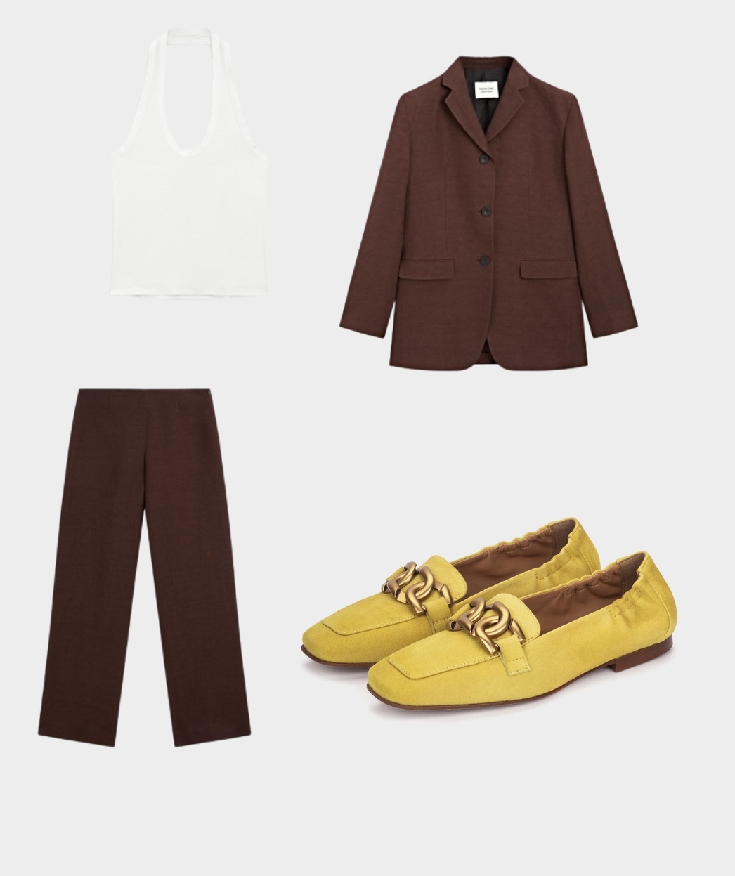 Si hay un truco infalible para estilizar la figura y conseguir un look elegante, ese es el monocromático. Escoge prendas del mismo tono o en gamas similares y completa el outfit con unos mocasines en el mismo color. Esto no solo alarga visualmente la figura, sino que también transmite un aire sofisticado y limpio.