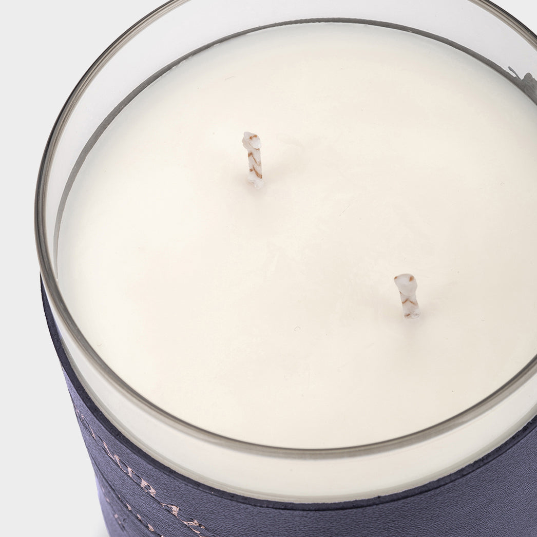 Nuestras velas aromáticas proporcionan una duración de veintidós horas encendidas aproximadamente, y se encuentran elegantemente depositadas en un recipiente de cristal. Adicionalmente, el envase de cristal está recubierto con un fajín elaborado en piel y grabado con el sello de nuestra tienda. Como toque adicional, cada vela incluye doble mecha.
