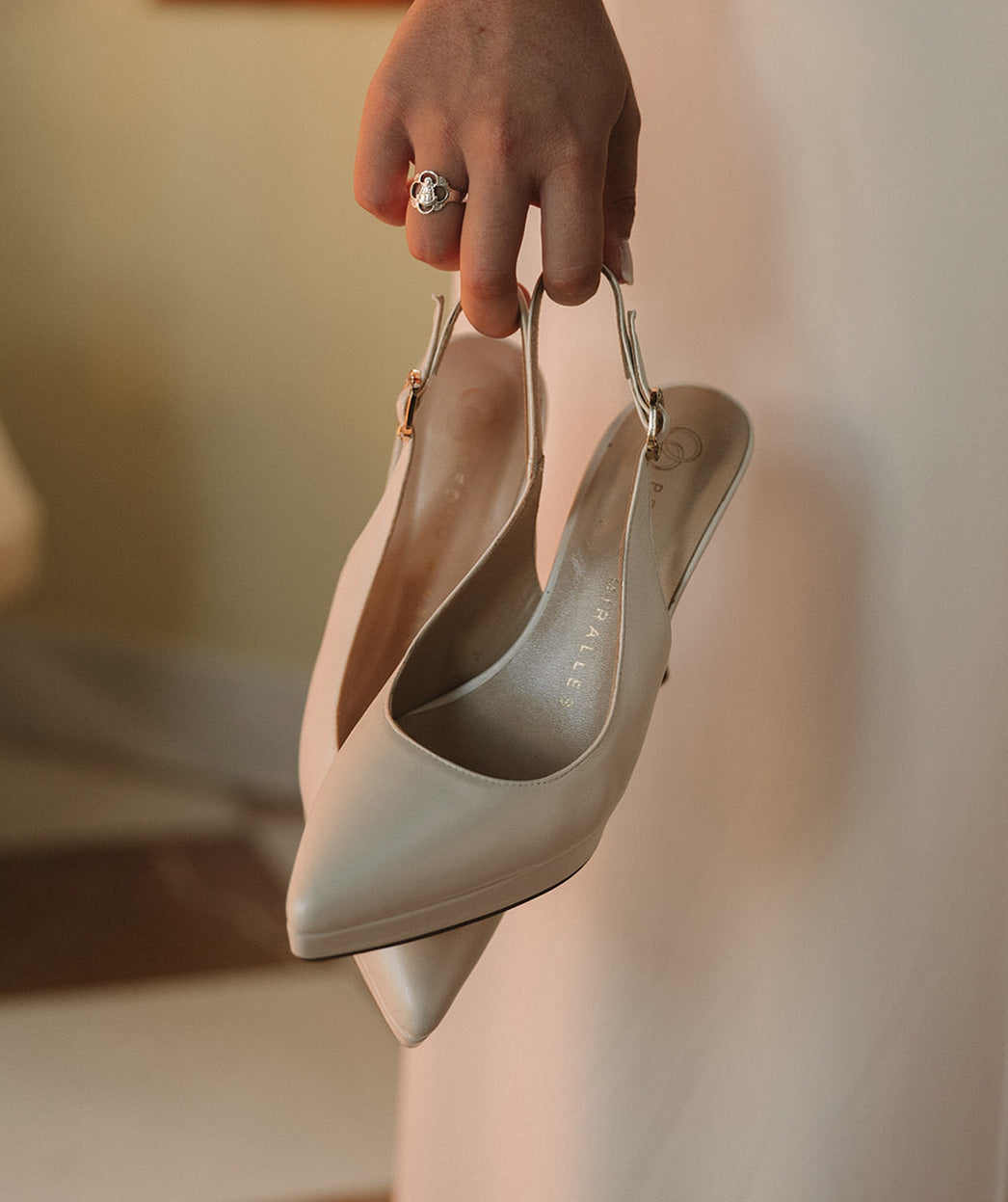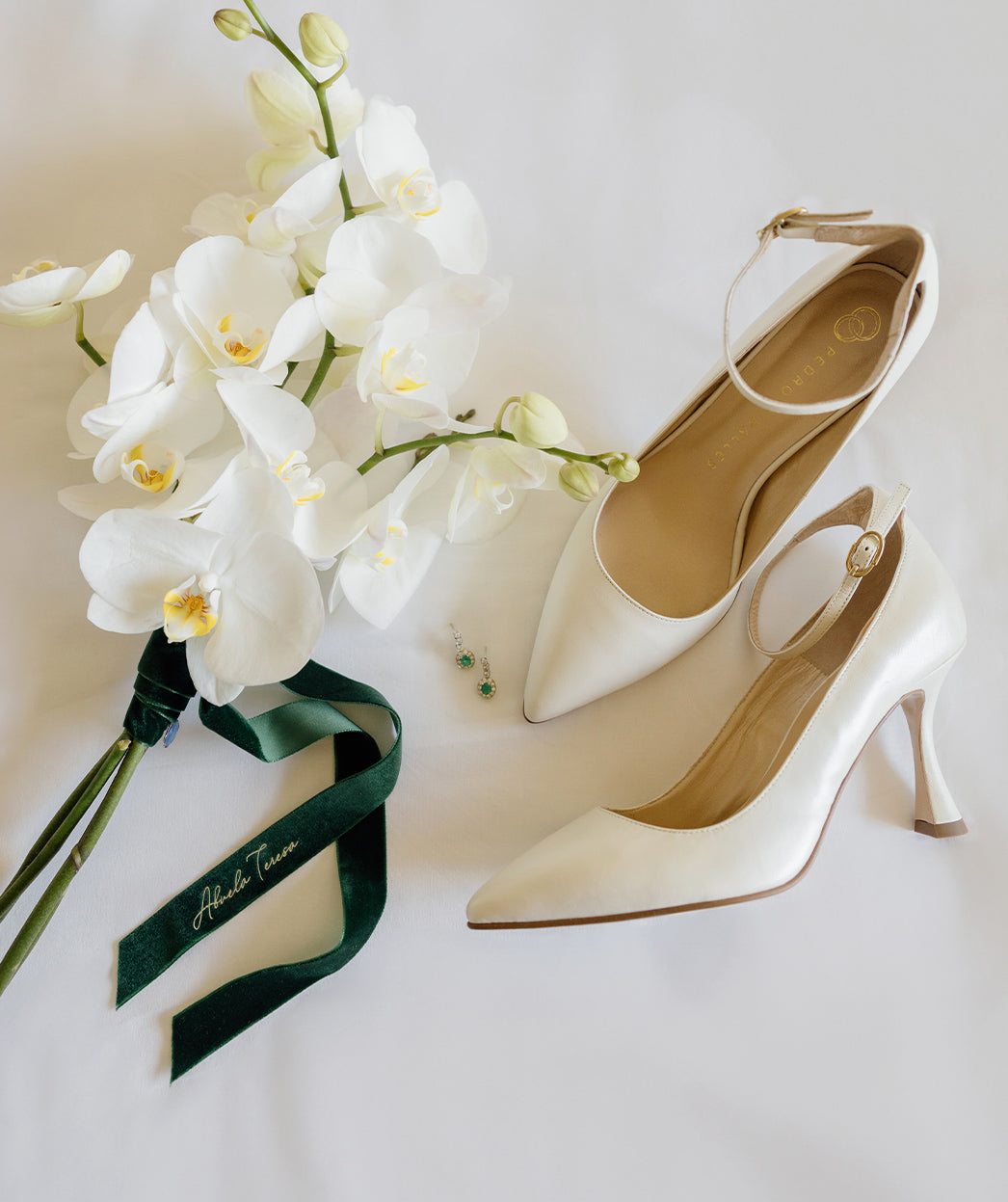 Patricia Miralles lució las sandalias que llevarían su propio nombre, PATRICIA, el día de su boda, un diseño que creó junto a su padre, Pedro Miralles. Diseñar juntos los zapatos de su boda fue un momento único y especial, el proceso se convirtió en una experiencia que jamás olvidarán. "Tenía claro que quería disfrutar de ese proceso junto a mi padre, quien tenía aún más emoción que yo. Era el secreto mejor guardado de la oficina".
