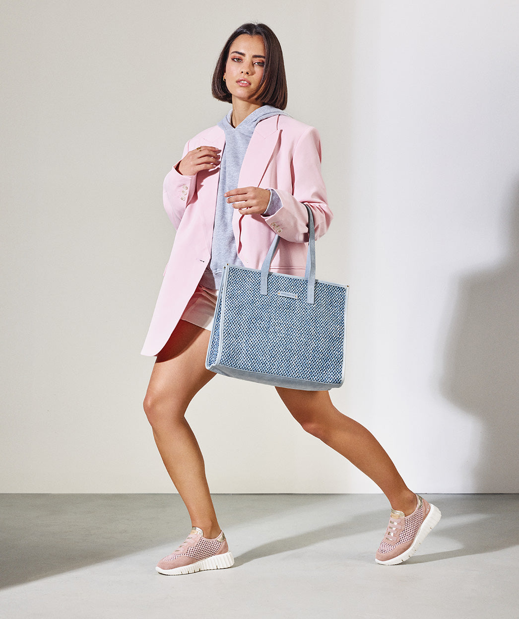 Sneaker aus Mesh und rosa Leder. Eine Adaption der klassischen Sportschuhe mit modernen und angenehm zu tragenden Materialien. Dieses Slip-On-Modell hat eine dicke Gummisohle. Sie können sie zu allem tragen, von Jeans bis hin zu Kleidern. Modell aus der Weekend by Pedro Miralles-Kollektion.