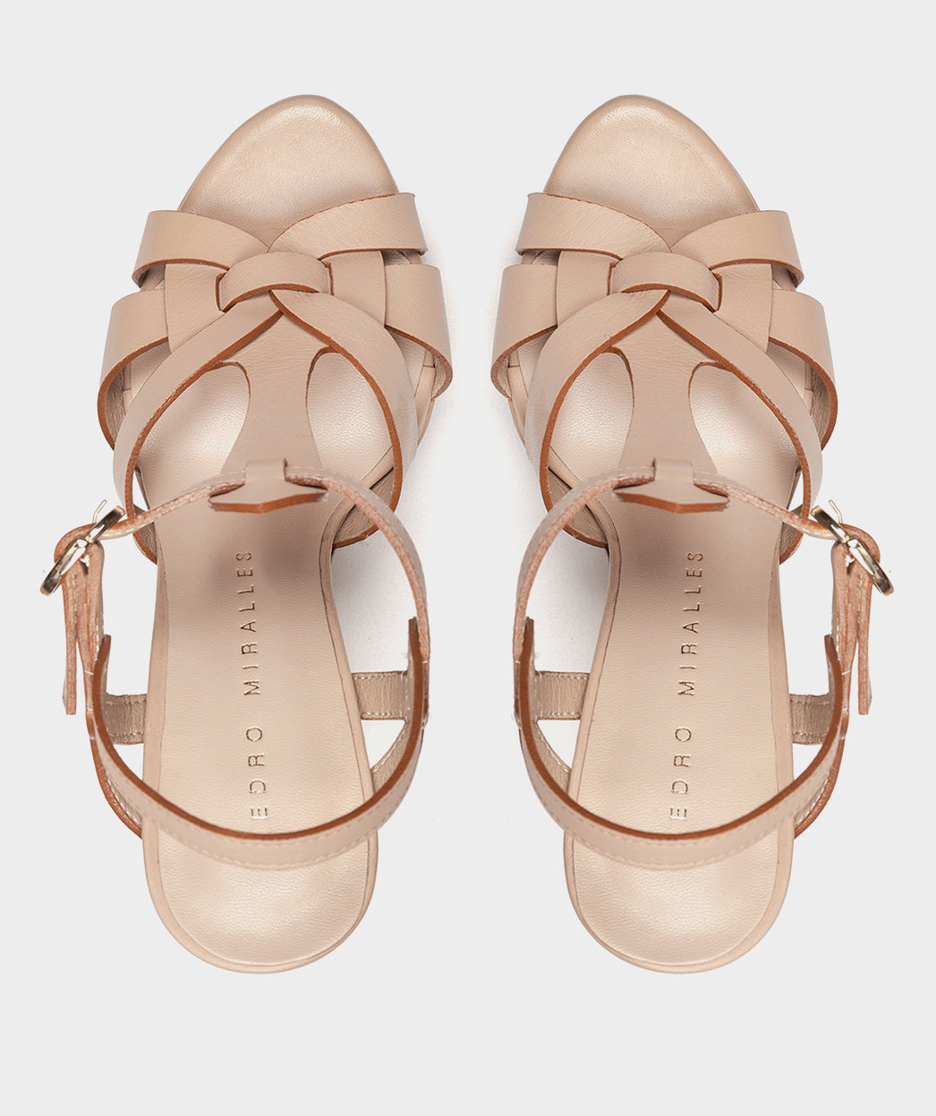 Hautfarbene Ledersandalen mit Absatz. Hergestellt mit einem hohen und gewagten Absatz, der bequemer ist, als Sie es sich vorstellen, insbesondere in Kombination mit dem Plateau. Mit den Copenhagen-Sandalen werden Sie bei jedem Look glänzen.