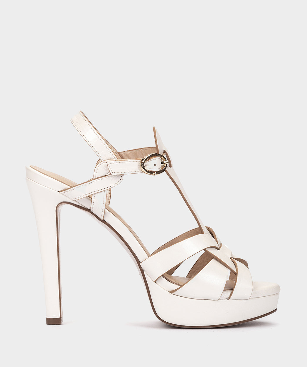Leder-Sandalen mit Absatz in weiß. Mit einem hohen und gewagten Absatz gemacht, um bequemer zu sein, als Sie sich vorstellen können, vor allem, wenn mit dem Plateau kombiniert. Die Copenhagen-Sandalen lassen Sie mit jedem Look glänzen.