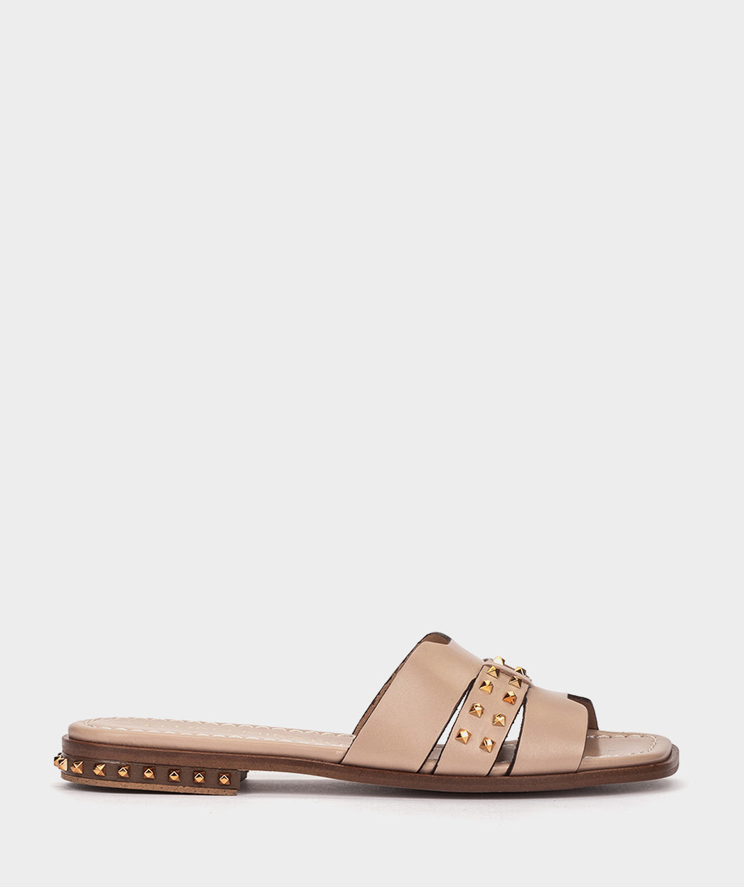 Flache Sandalen aus nudefarbenem Leder. Sie sind das perfekte Schuhwerk für jeden Anlass. Sie sind auch ideal, um jedes Sommeroutfit aufzuwerten.