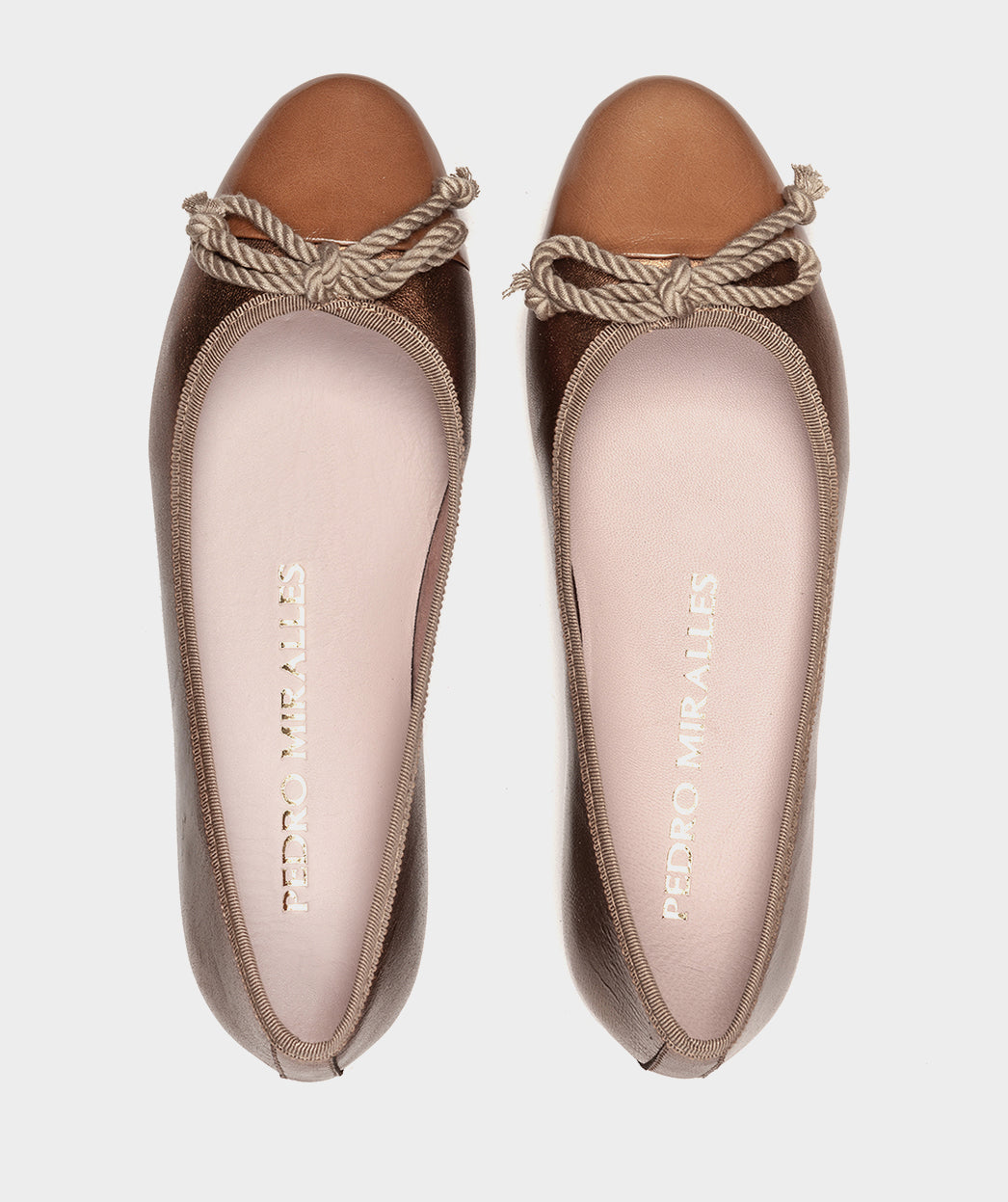 Ballerinas aus bronzefarbenem Metallic-Leder. Entscheiden Sie sich diese Saison für das Modell GERIA, ein klassisches, bequemes und stilvolles Design.