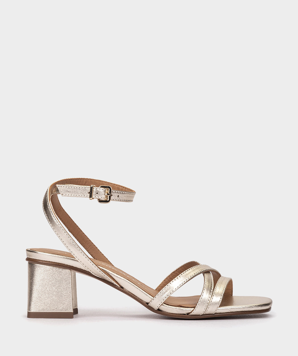 Sandaletten aus metallischem Leder in Platinfarbe. MARINES wurde als die vielseitigste Sandale der Saison geboren. Die Höhe seines Absatzes ist perfekt, um ihn den ganzen Tag über bequem zu tragen. Ein Modell, das sowohl bei Veranstaltungen als auch im Alltag getragen werden kann. Vielseitigkeit ist sein Hauptmerkmal.