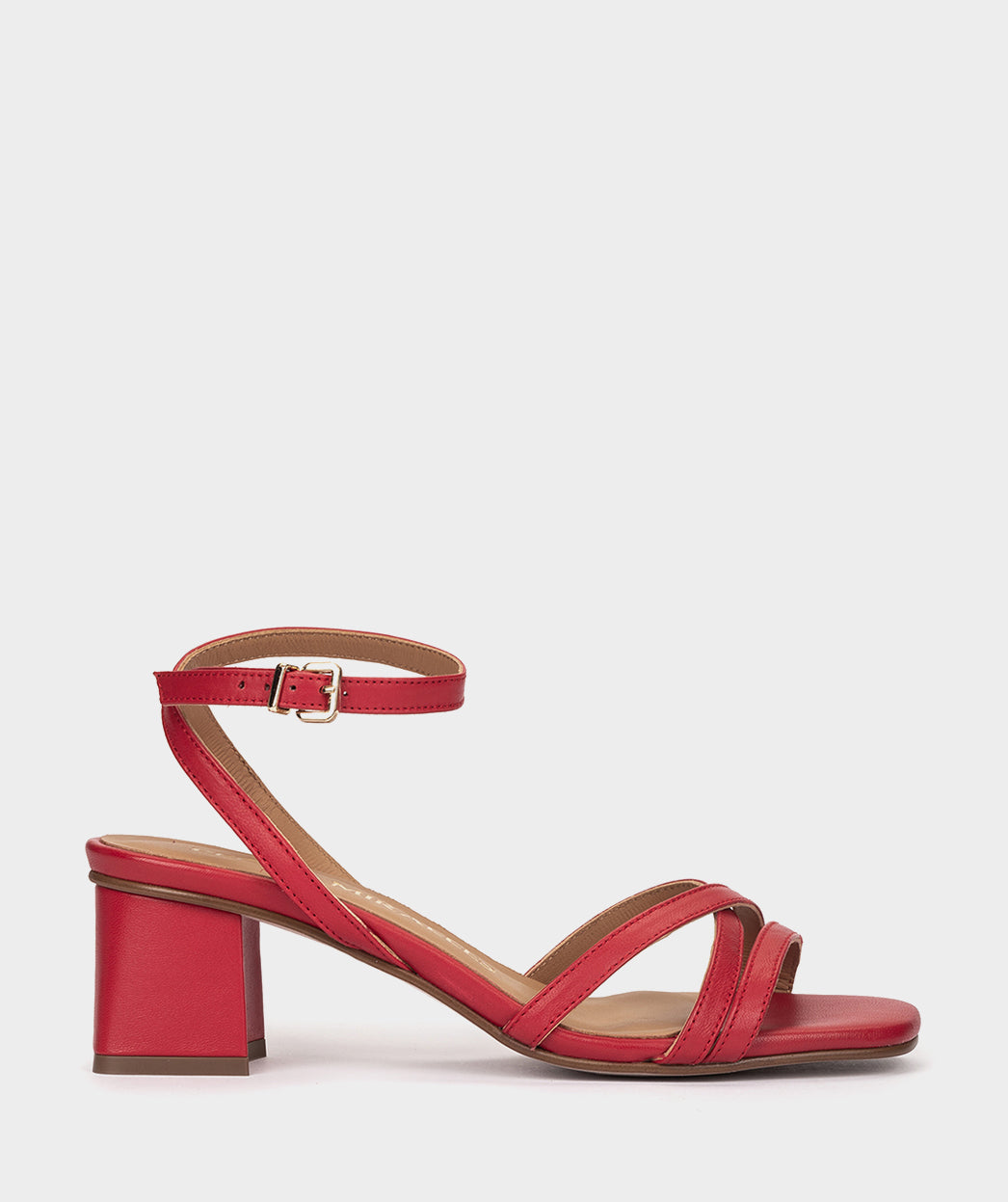 Sandalen mit hohem Absatz aus rotem Leder. MARINES sind die vielseitigsten Sandalen der Saison. Die Absatzhöhe ist perfekt, um sie den ganzen Tag bequem zu tragen. Ein Modell, das für Veranstaltungen und den Alltag konzipiert wurde. Vielseitigkeit ist sein Hauptmerkmal.