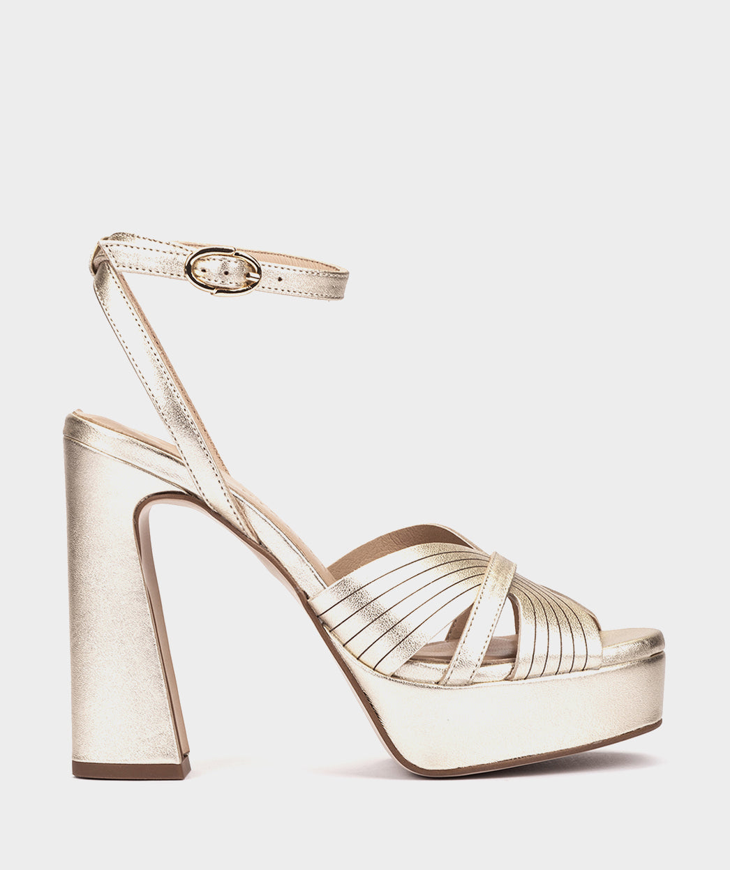 Sandaletten aus metallischem Leder in Platinfarbe. Glamouröses Design aus zusammengefügten Trägern, die einen gerippten Effekt erzielen. Die Montefioralle-Sandalen sind die perfekte Ergänzung zu Ihrem festlichen Look.
