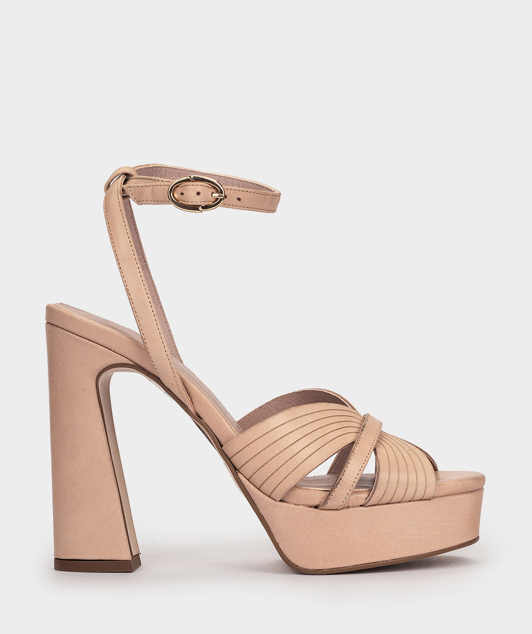 Sandalen mit Absatz in Hautfarbe. Glamouröses Design aus miteinander verbundenen Trägern, die einen gerippten Effekt erzielen. Montefioralle-Sandalen sind die perfekte Ergänzung zu Ihrem festlichen Look.