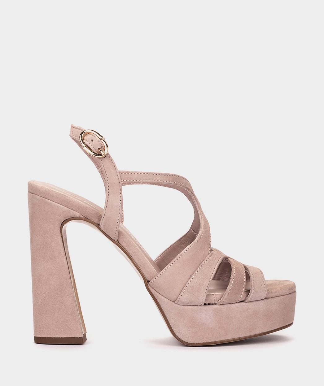 Sandalen mit Absatz aus rosa Wildleder. Hergestellt mit geschwungenen Riemchen über dem Spann, um einen eleganten und einzigartigen Ausschnitt zu schaffen. Ohne Zweifel ein Modell, das dank seines besonderen Designs stylt.