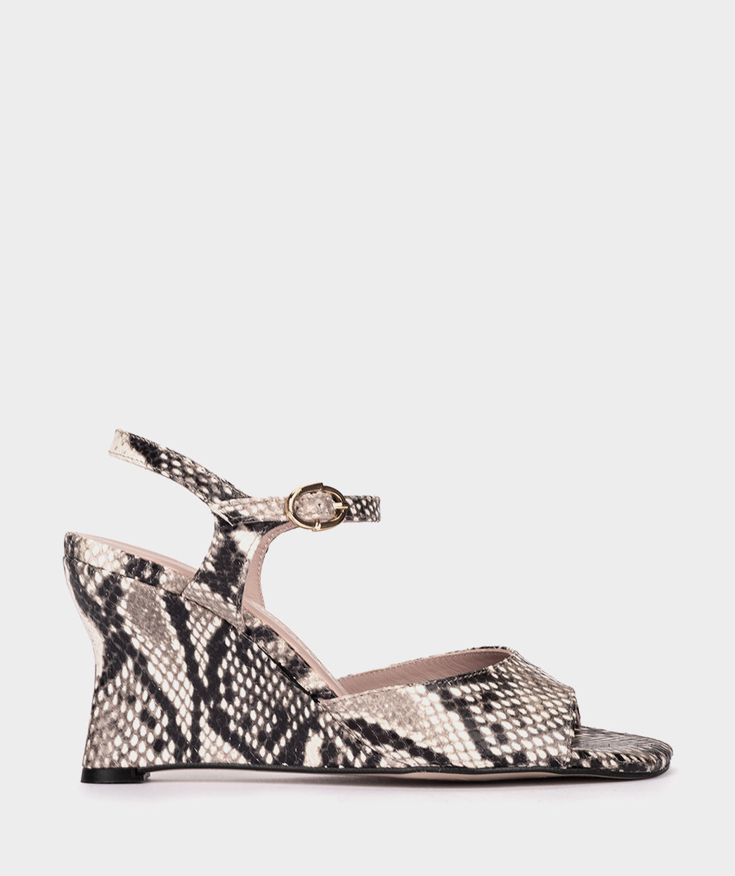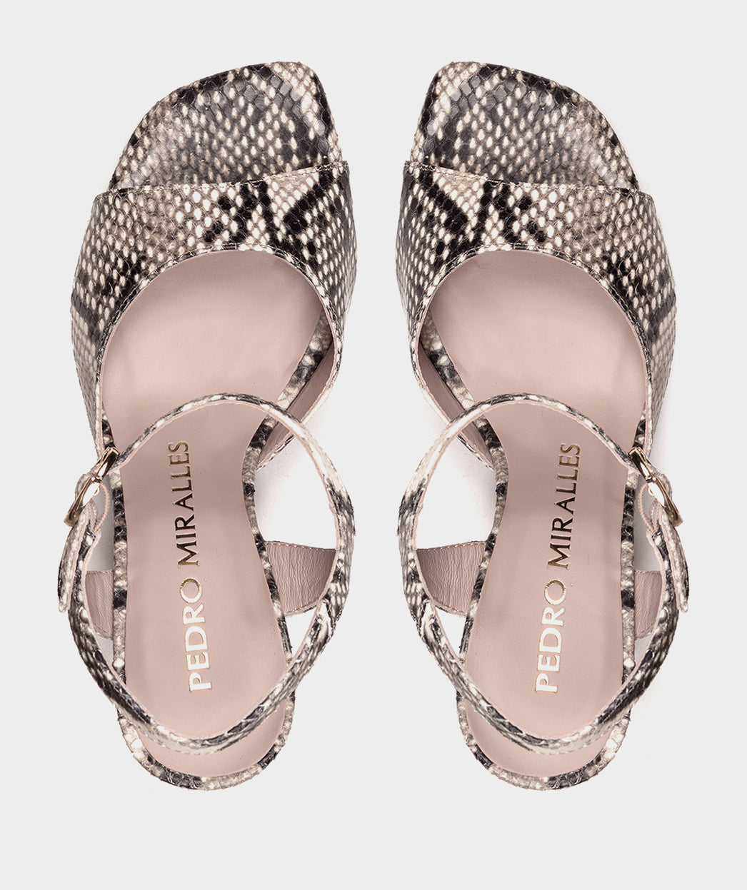 Sandalen mit Absatz aus Leder in Schlangenoptik. Die perfekte Sandale für alle, die größer werden möchten, ohne auf Komfort zu verzichten.