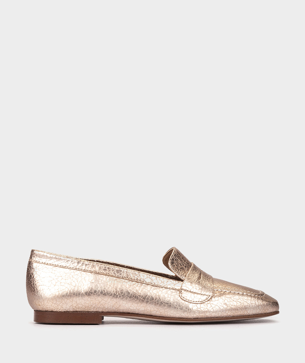 Mokassins aus roségoldenem, knisterndem Metallic-Leder. Ein Design, das sowohl im Alltag als auch bei Veranstaltungen getragen werden kann. Raffinesse wird zum Hauptmerkmal der Slipper, die in dieser Saison Erfolg versprechen.