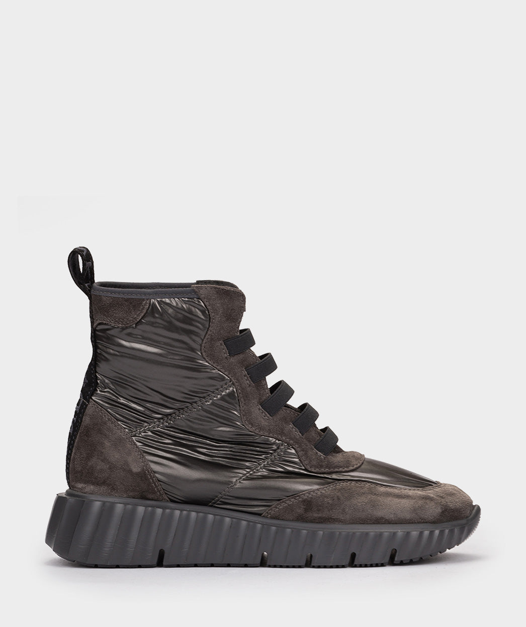 Graue Sportstiefeletten aus Wildleder und Stoff. Das Schuhwerk, das zum Protagonisten Ihrer lässigsten Looks wird, egal ob auf dem Land oder in der Stadt. Ein Modell, das sich durch seinen Komfort auszeichnet und dessen Design durch die Kombination der Materialien, aus denen es besteht, Aufmerksamkeit erregt. Es verfügt über eine herausnehmbare Innensohle.