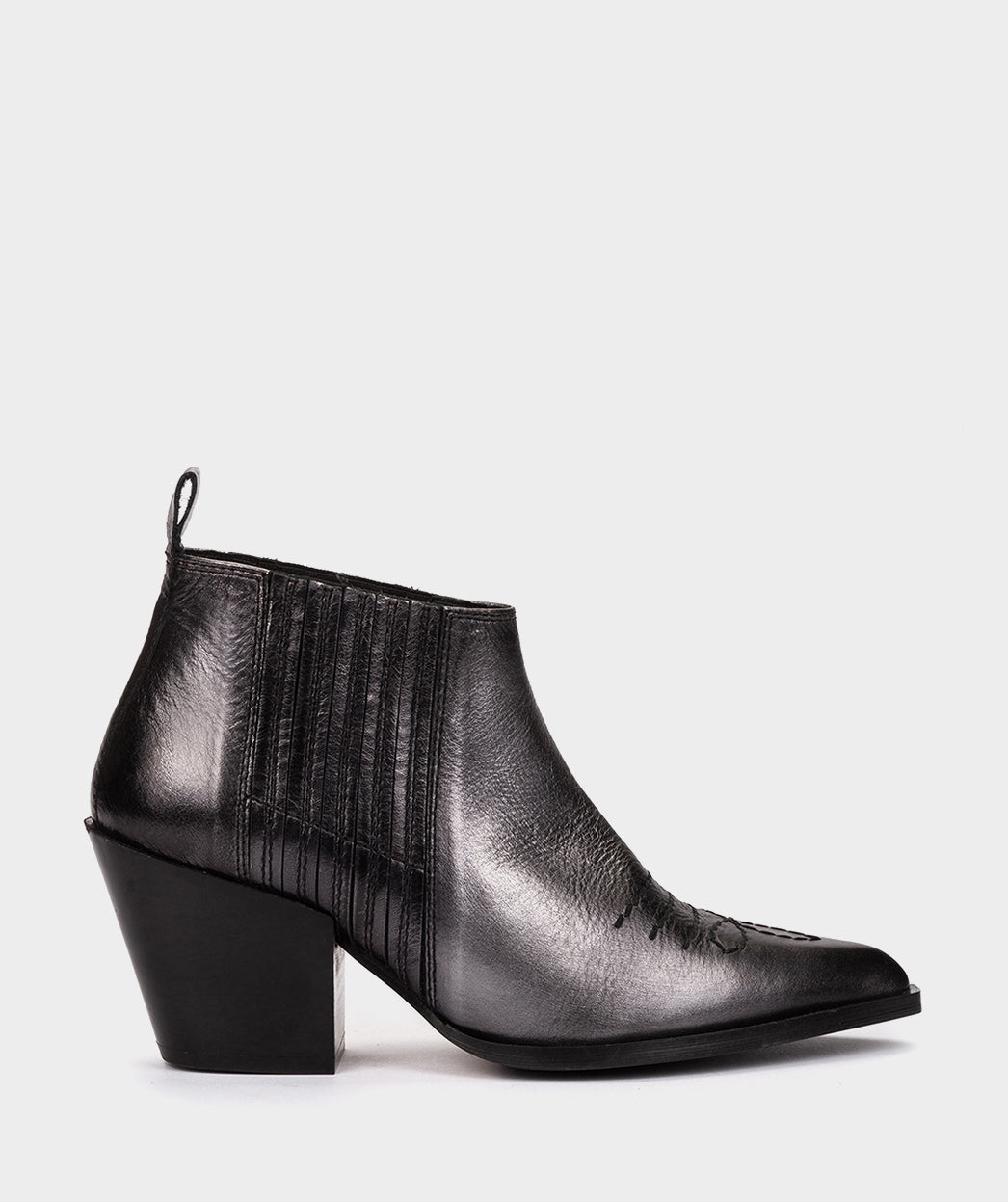 Stiefelette aus Metallic-Leder in Bronze. Das Modell SUNRIVER verbindet die Western-Ästhetik mit dem Komfort und der Vielseitigkeit eines Chelsea-Boots. Die elastischen Seitenteile erleichtern das Anziehen der Stiefel und sorgen für eine bequeme Passform. Diese Stiefelette ist eine mutige, moderne und raffinierte Wahl.