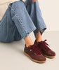 Burgunderfarbene Sportschuhe aus Kunstledergewebe. Die INDIANA Sneaker bieten einen modernen Look mit einer raffinierten Textur. Seine Farbe verleiht ihm eine schicke und originelle Note. Mit ihren Schnürsenkeln und der sorgfältigen Verarbeitung vereinen sie Stil und Komfort für den Alltag.
