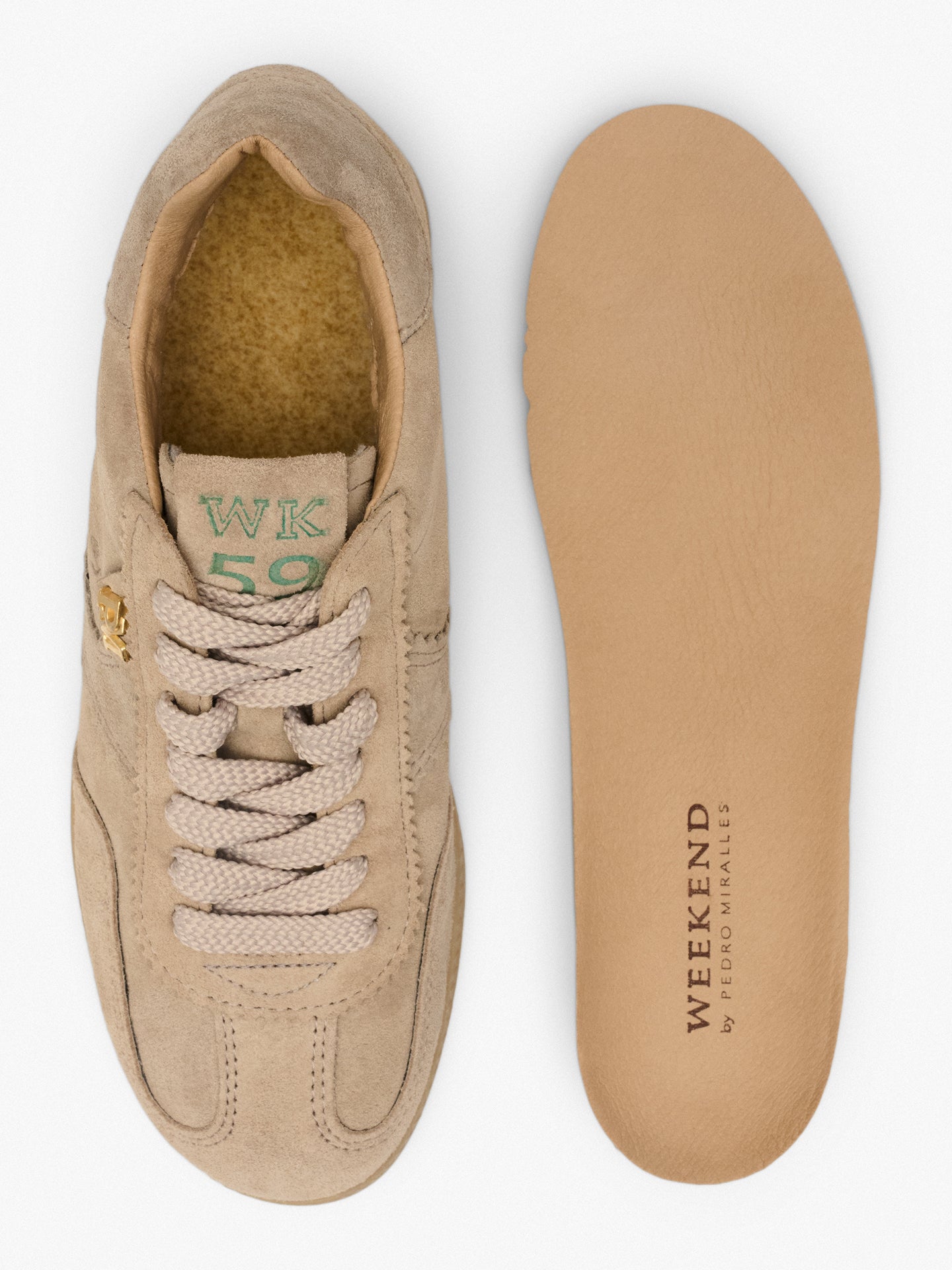 Sportschuhe aus braunem Samt. Die INDIANA Sneaker bieten einen modernen Look mit einer raffinierten Textur. Seine Farbe verleiht ihm eine schicke und originelle Note. Mit ihren Schnürsenkeln und der sorgfältigen Verarbeitung vereinen sie Stil und Komfort für den Alltag.