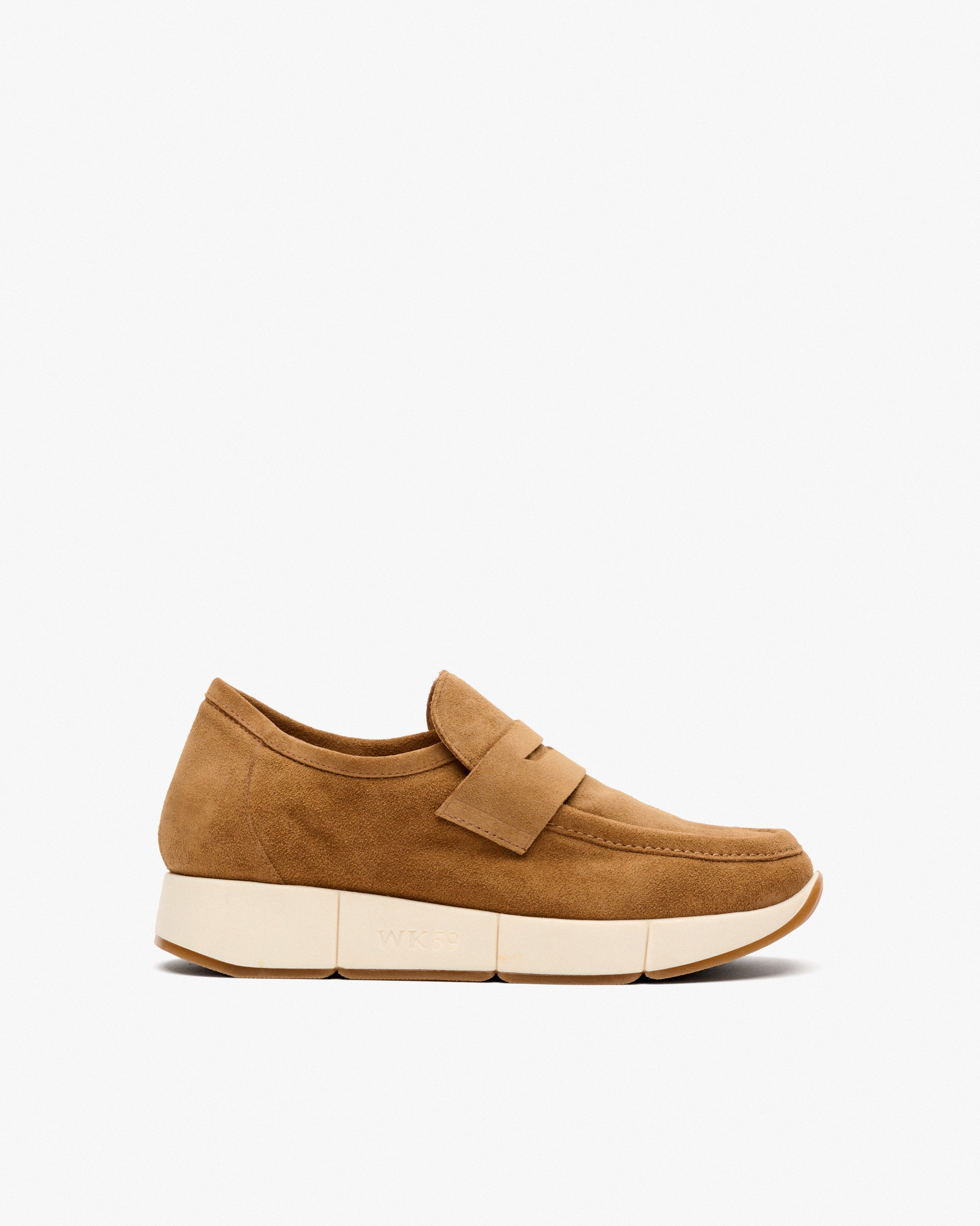 Braune Sportschuhe aus Wildleder. Das Modell WISMAR zeichnet sich durch sein Slip-On-Design aus, das Praktikabilität und Raffinesse vereint. Bequem und schlicht wird es zu einem Must-Have für Ihre lässigen Outfits und vereint Modernität und Leichtigkeit. Es hat eine herausnehmbare Innensohle.