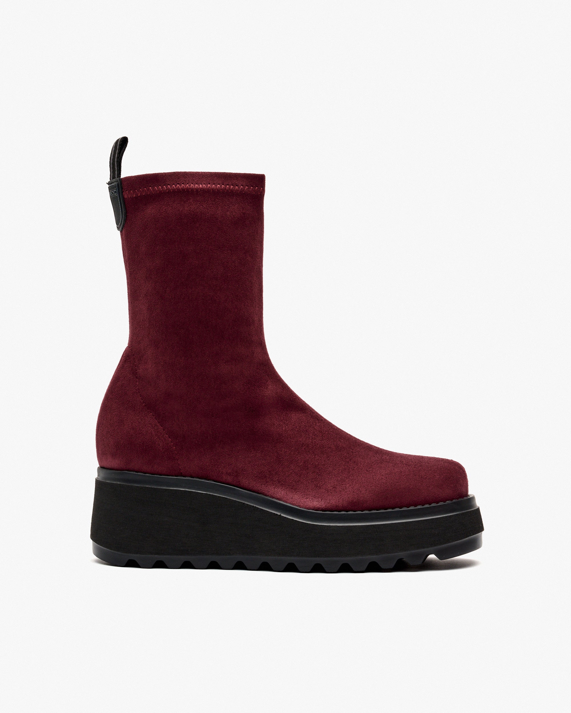 Stiefeletten aus Stretchgewebe mit burgunderrotem Wildledereffekt. Perfektes Design, das zu lässigen Outfits getragen werden kann, kombiniert Komfort und Stil. Das Modell TIERRENO passt sich Ihnen an und bietet eine tadellose Passform, als wäre es eine Socke.