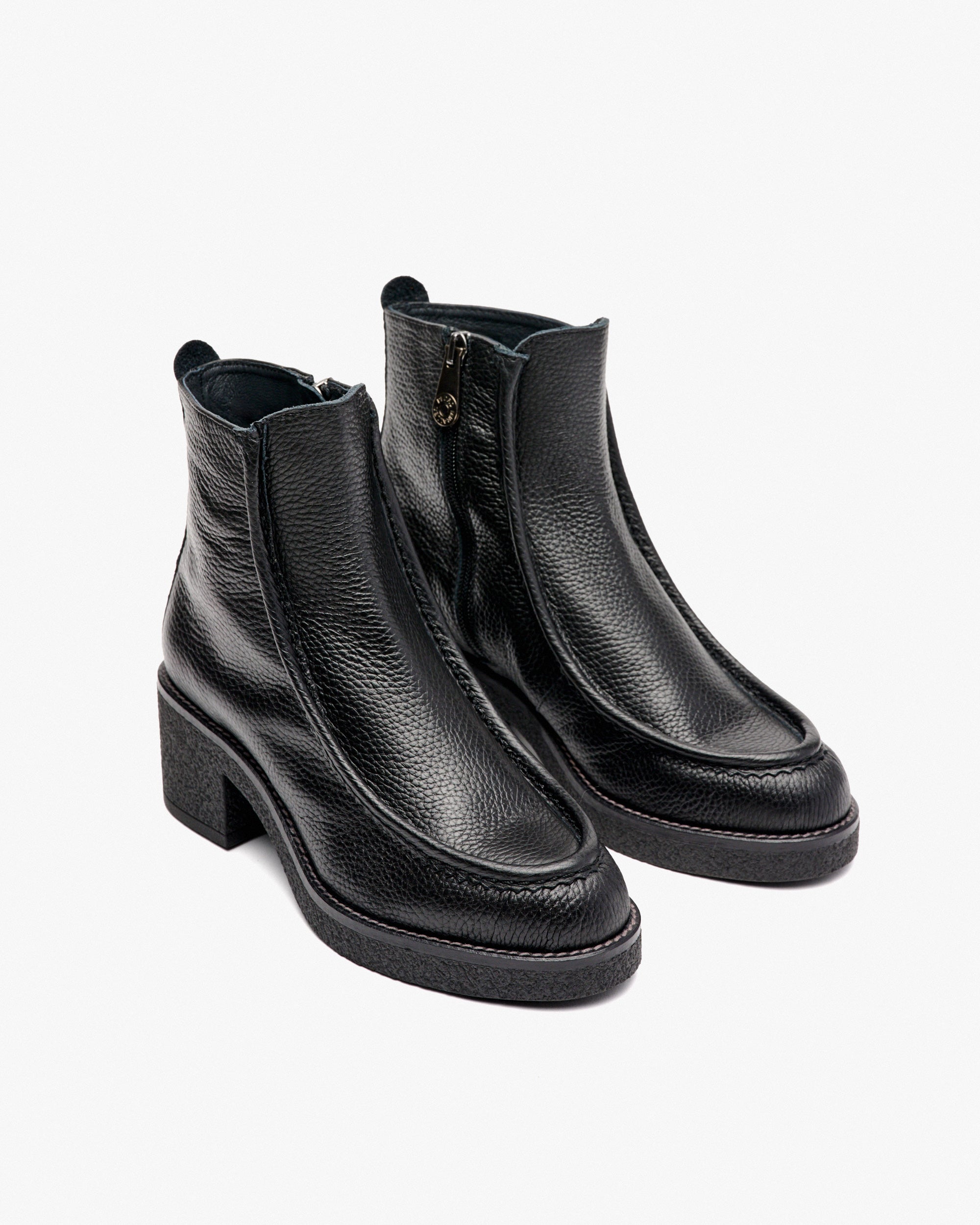 Stiefeletten aus schwarzem Leder. Ein geländegängiges Design, das den ganzen Tag über getragen werden kann. Die raue Sohle und der Absatz zeichnen sich durch einen rutschfesten Grip aus. Das Detail der Naht am Spann unterstreicht die Originalität des Modells.