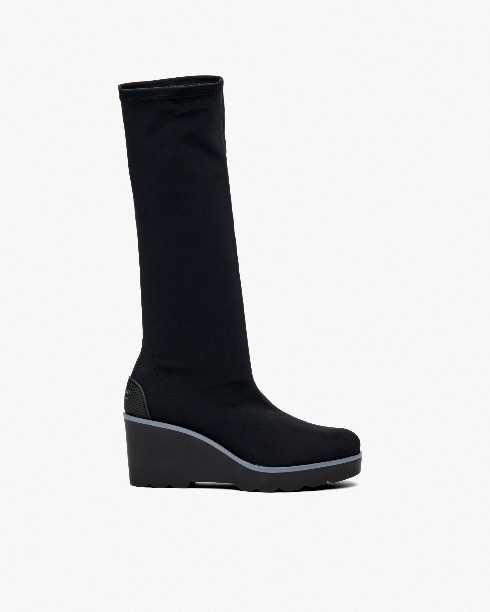Hohe Stiefel aus schwarzem Stretchgewebe. SALISBURY Stiefel sind aus unserem beliebten Stretch-Material für eine optimale Passform gefertigt. Die perfekte Balance zwischen Frische, Höhe und Komfort. Sein breiter Leisten sorgt auch nach stundenlangem Gebrauch für eine geräumige und angenehme Passform.