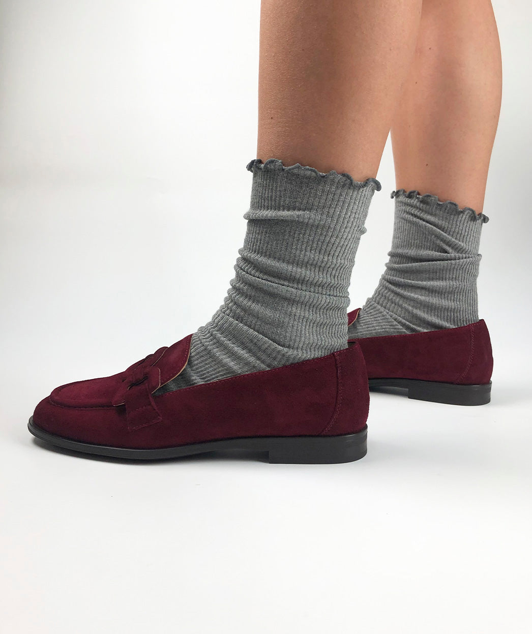 Burgunderrote Wildleder-Loafer. Das Design des Modells NUMEA zeichnet sich durch sein Reliefdetail auf der Klinge aus. Diese Slipper werden in dieser Saison zu Ihren Essentials, Sie werden von ihrem Komfort begeistert sein.