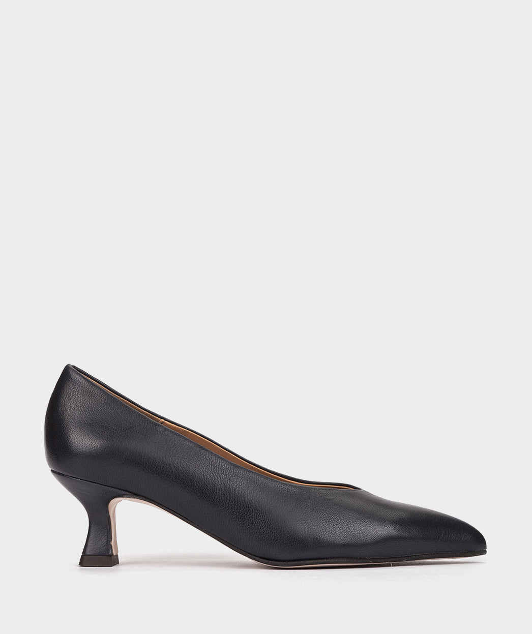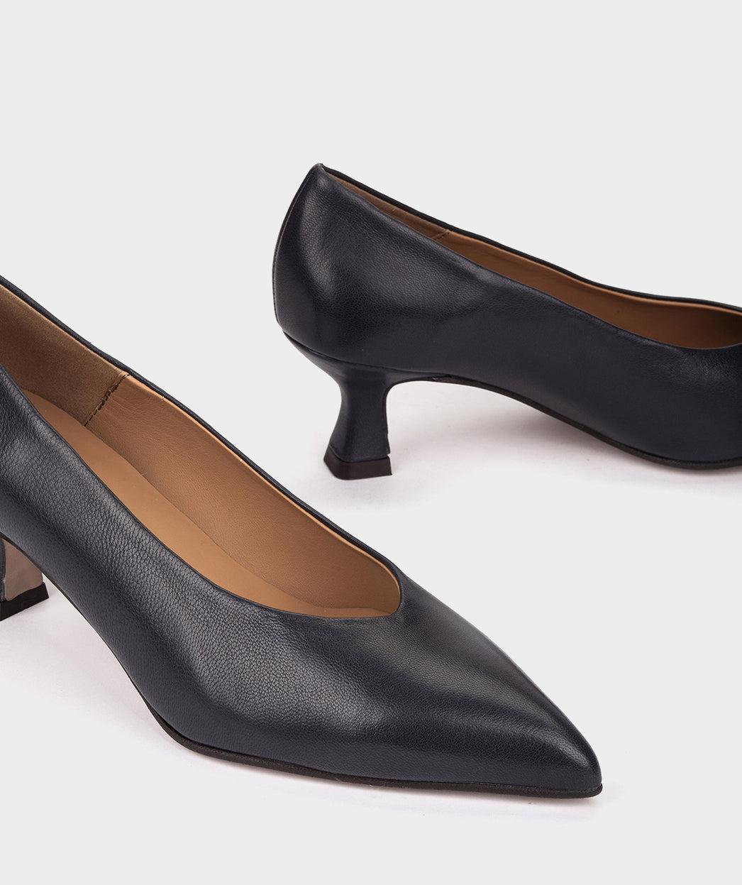 Marineblaue Lederschuhe. Diese Pumps werten Ihren Look auf, dank ihres spitzen Finishs, das den Look stilisiert und den Effekt endloser Beine erzeugt. Der Absatz dieses Modells hat die perfekte Höhe, um es den ganzen Tag bequem tragen zu können.