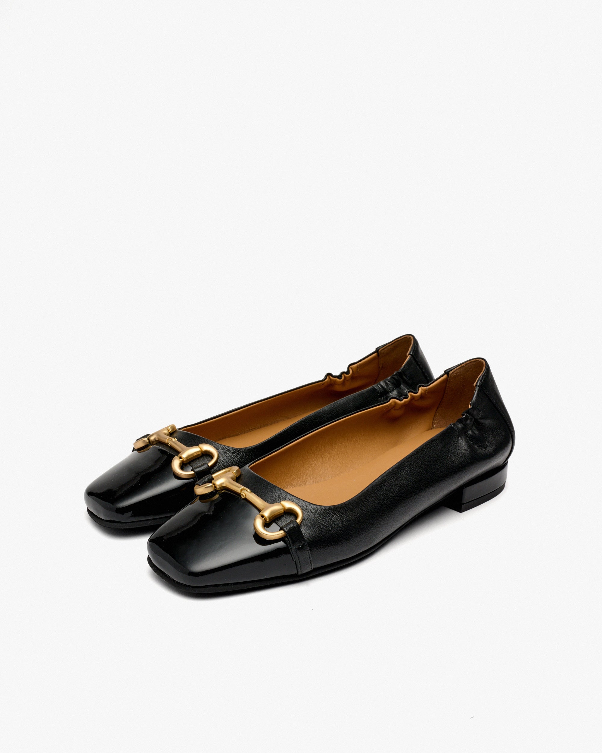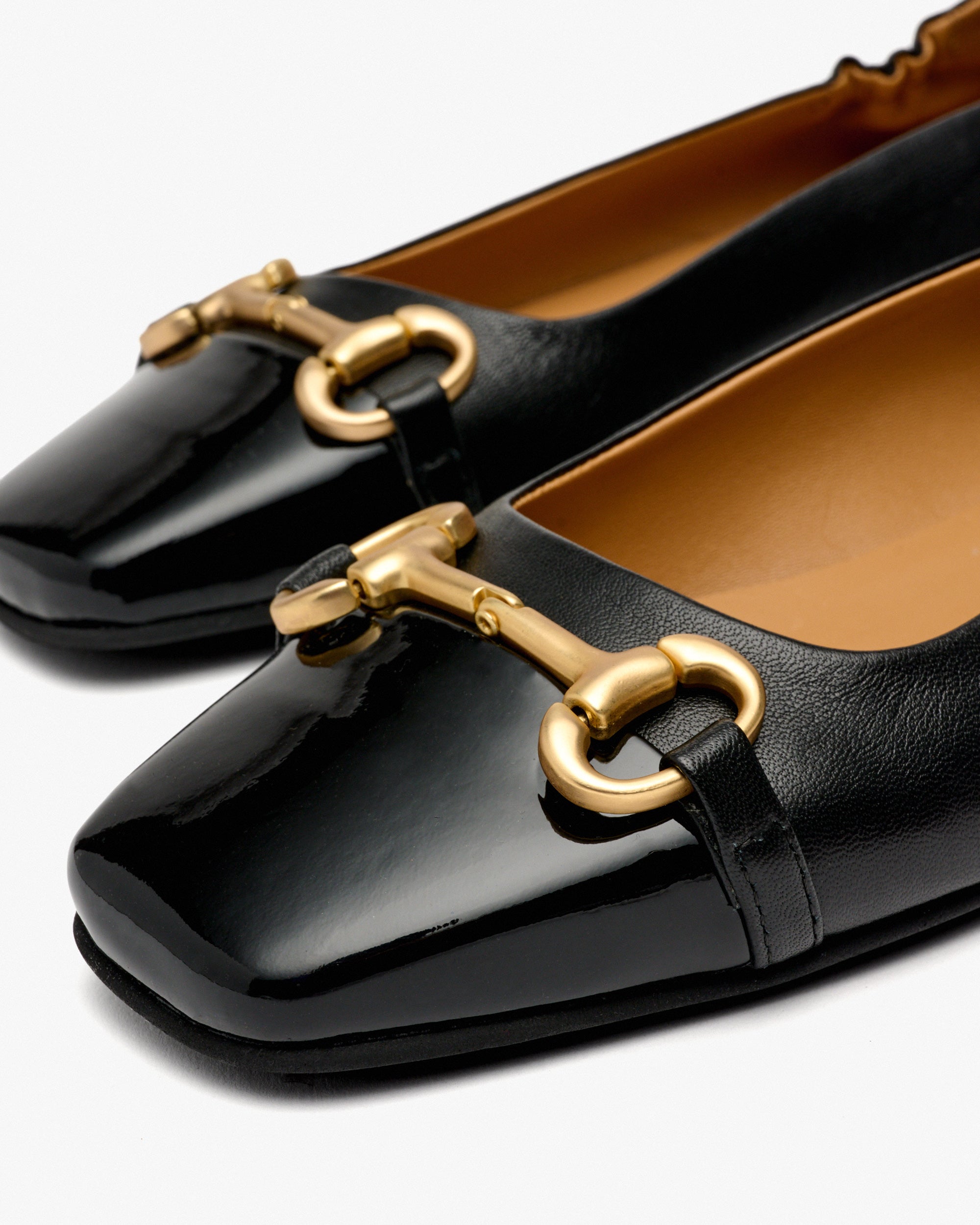 Zweifarbige Ballerinas aus schwarzem Leder mit Ornament. Diese eleganten und vielseitigen Ballerinas aus Leder zeichnen sich durch raffinierte Details aus. Perfekt zu Ihren täglichen Outfits sowie zu eleganteren Looks für besondere Anlässe. Das geraffte Rückendetail bietet eine bessere Passform am Fuß.