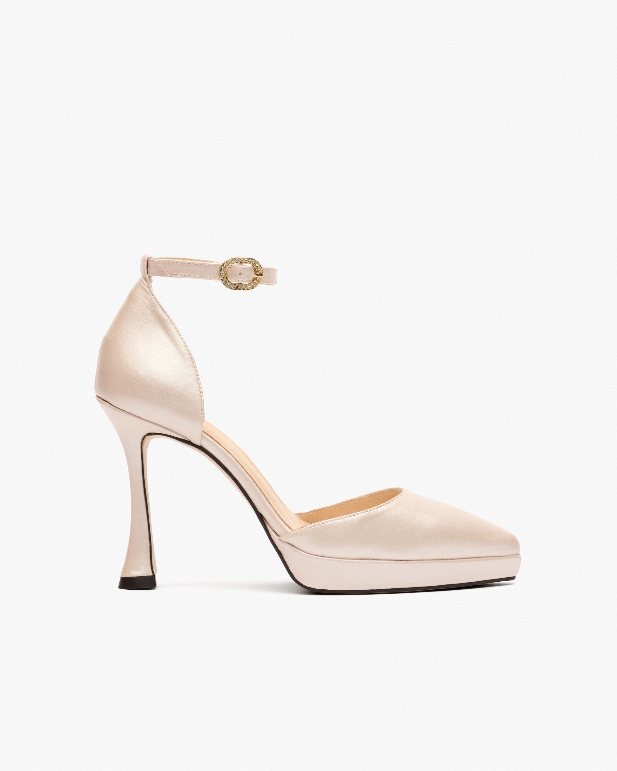 Plateauabsätze aus vanillefarbenem Leder. Die Silhouette dieser Schuhe ist elegant und raffiniert, mit einer feinen Spitze, die zart verlängert ist und die Weiblichkeit des Designs betont. Die Plattform, die sorgfältig in das Design integriert ist, sorgt für Höhe und Stabilität und gibt Ihnen das Gefühl, auf einer Wolke zu laufen.