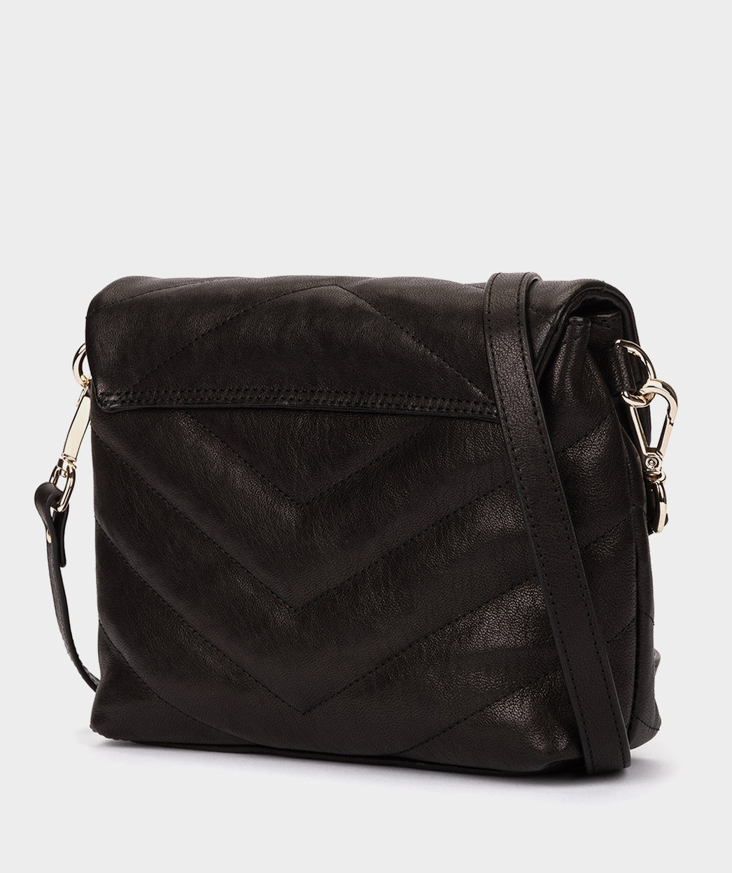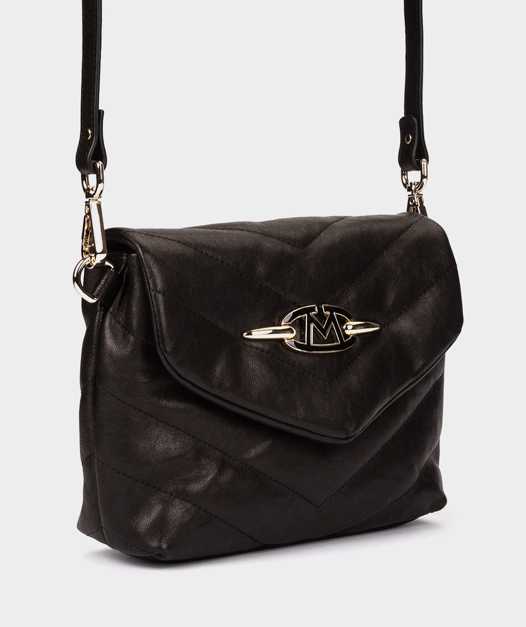 Schwarze Umhängetasche aus Leder. Ein vielseitiges Modell, das sich jedem Plan anpasst. Sein Design kombiniert den Steppeffekt mit den Details des Ornaments und verleiht dem Modell Originalität. Dank des verstellbaren Griffs können Sie ihn ganz nach Ihren Wünschen anpassen. Es verfügt über einen Magnetverschluss.