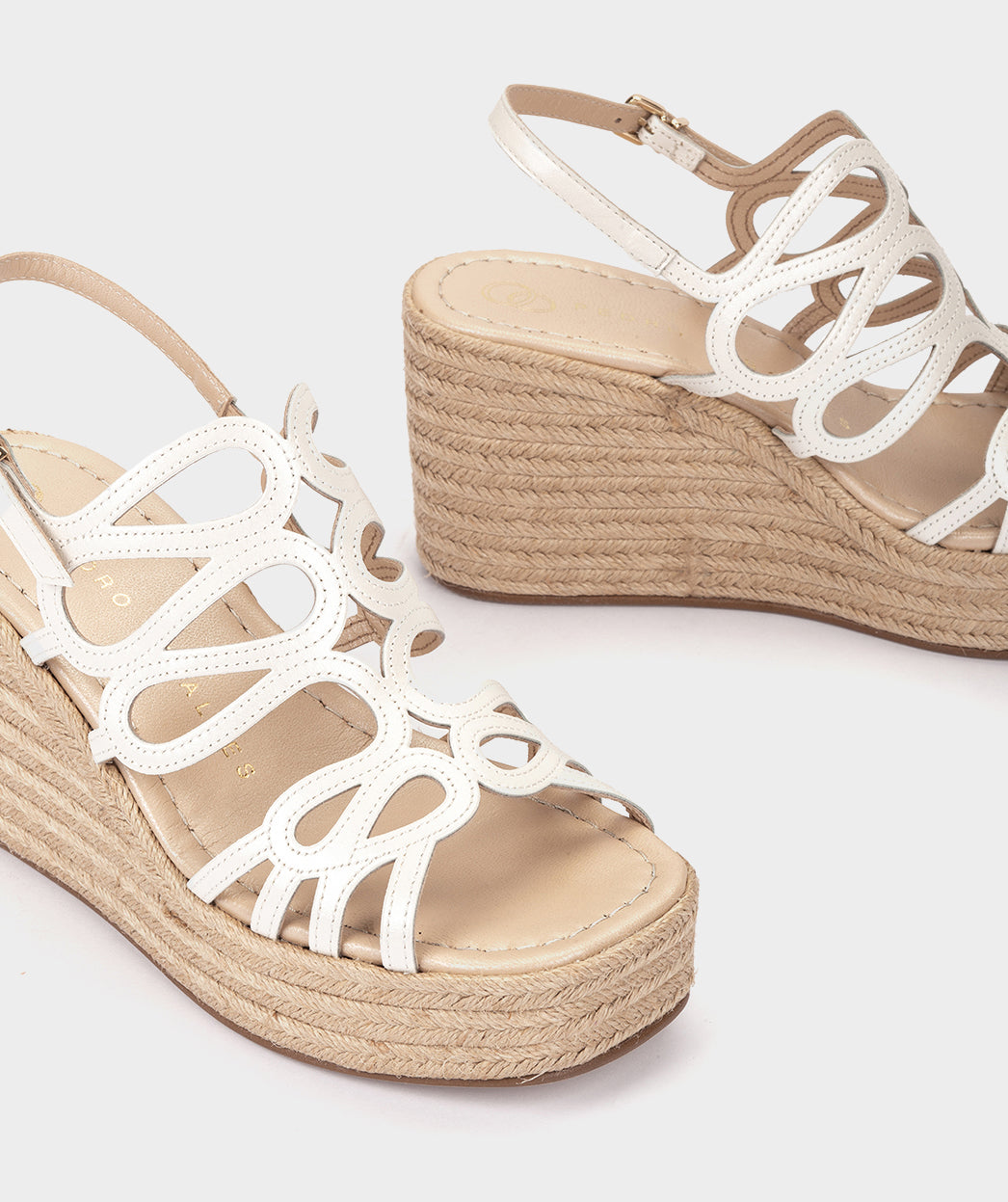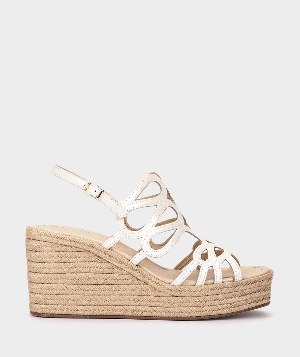 Weiße Lederkeile. Präsentieren Sie mit Stil die Wedges, die sich durch Raffinesse und Komfort auszeichnen. Sobald Sie sie ausprobiert haben, möchten Sie sie nicht mehr ausziehen, sie sind ideal!