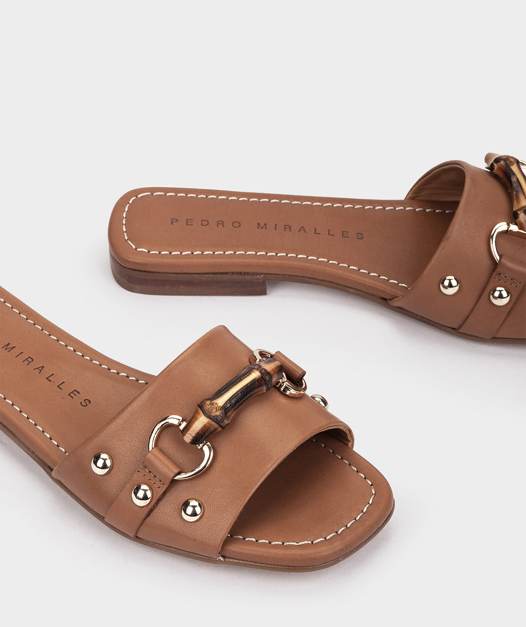Flat leather sandals. You'll love their unique design thanks to the bamboo trim that enhances the vamp. The Caudiel sandals are perfect to complete your look, as they combine style and comfort.