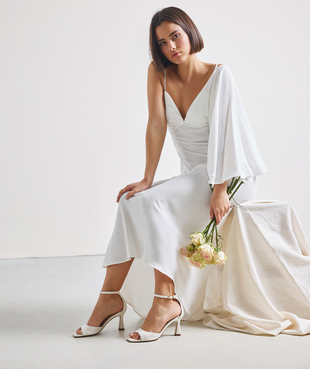 Pearl white leather heeled sandals. Imagine a basic sandal, but full of style, this is the Alayor model. The perfect model that balances elegance with simplicity.