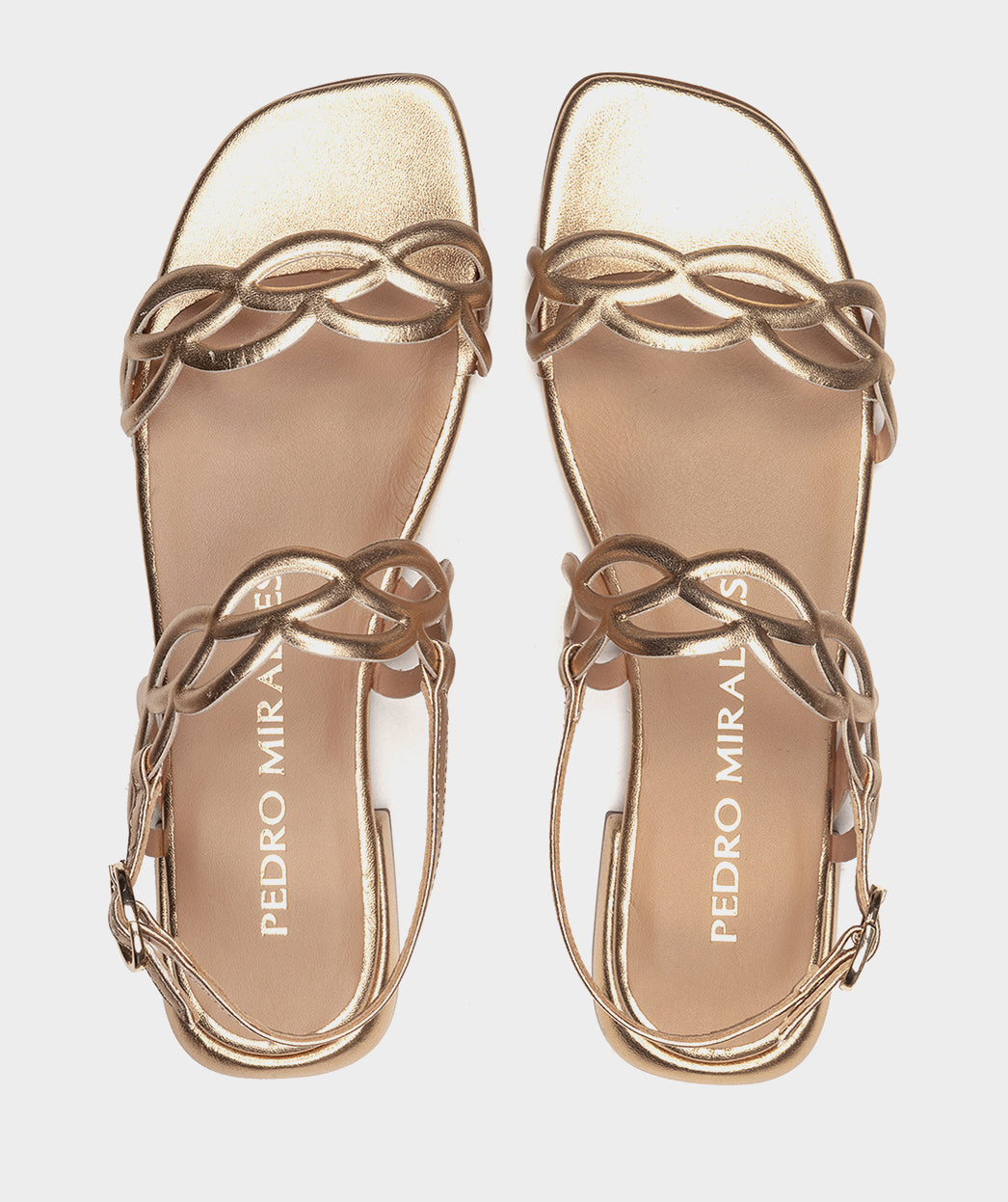 Flat sandals in metallic gold leather. A classic we won't forget, Roman sandals with studs. A perfect choice to be fashionable without losing the comfort you're looking for. Wear them however you like this summer!