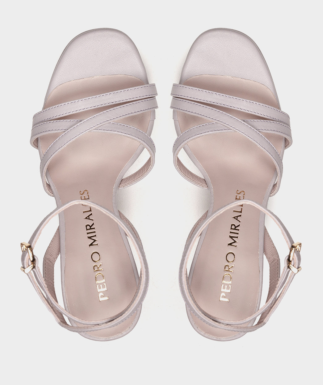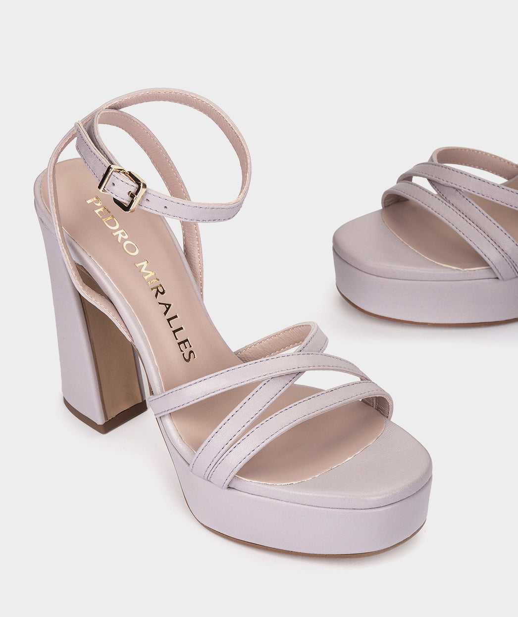 High-heeled sandals made of lilac-coloured leather. The CIVITELLA sandals stand out for their elegant design. The combination of the straps on the vamp with the retro heel and the platform give the model personality. It will be your best ally at your next events this season..
