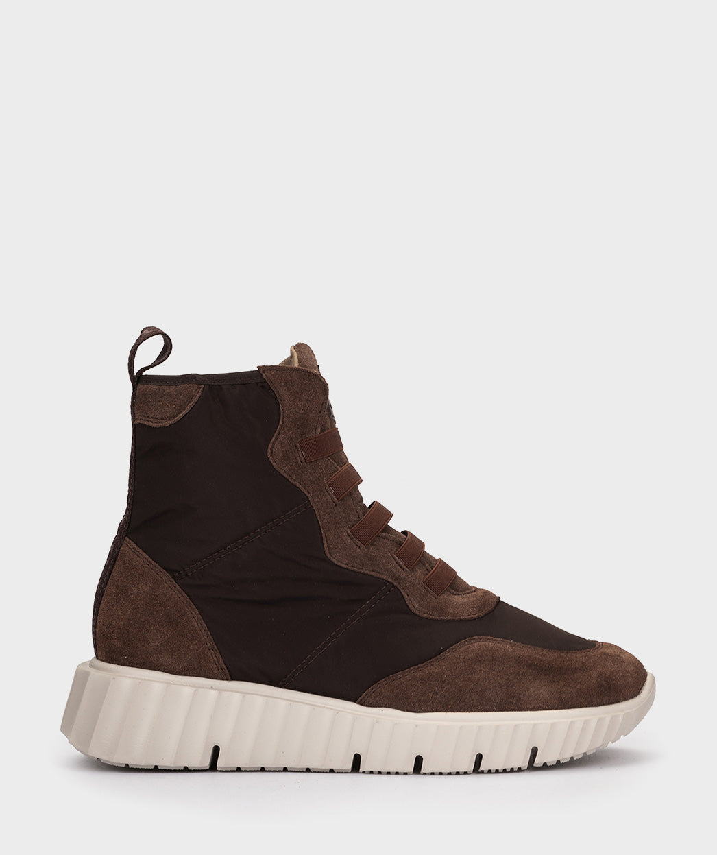 Bottines de sport marron. Les chaussures qui deviendront le protagoniste de vos looks les plus décontractés, que ce soit à la campagne ou en ville. Un modèle qui se distingue par son confort, dont le design attire l'attention grâce à la combinaison des matériaux qui le composent. Elle possède une semelle intérieure amovible.