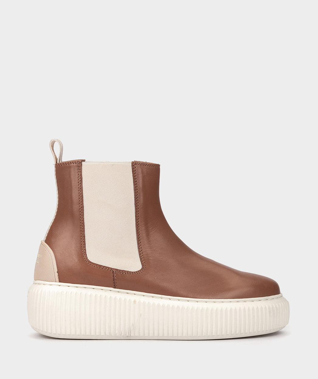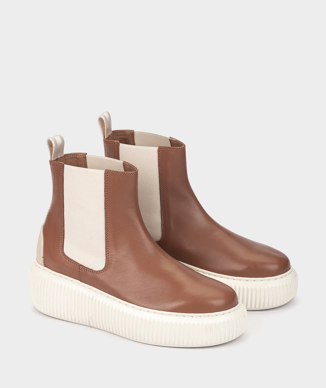 Brown leather sports ankle boots. Ankle boot with a platform that will become a staple in your wardrobe due to its versatility and comfort.