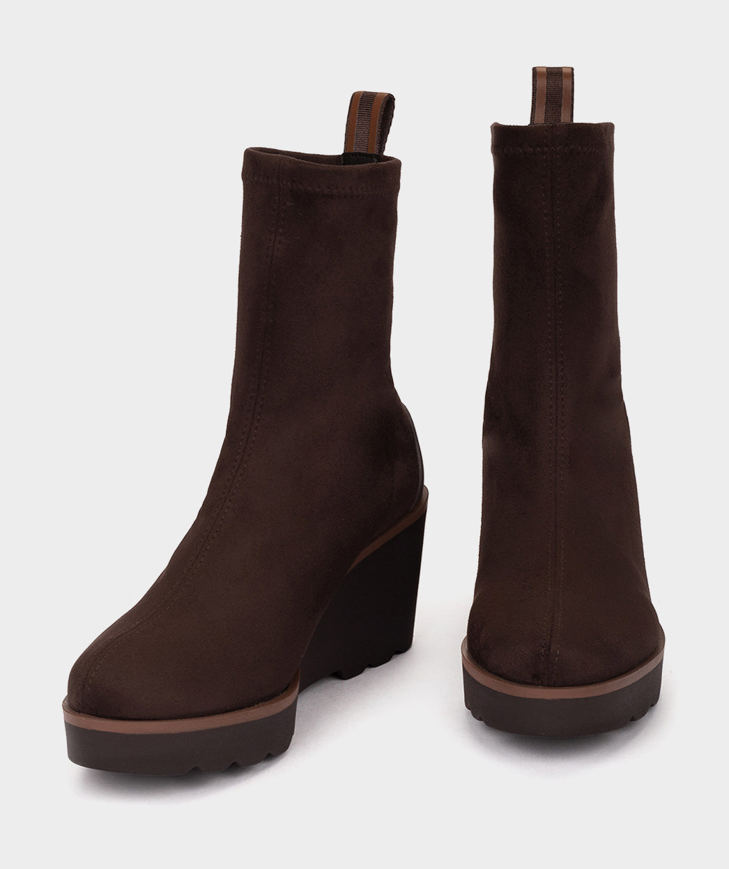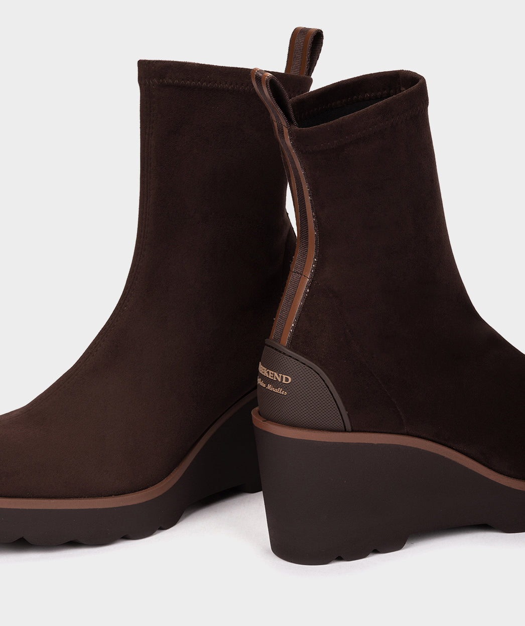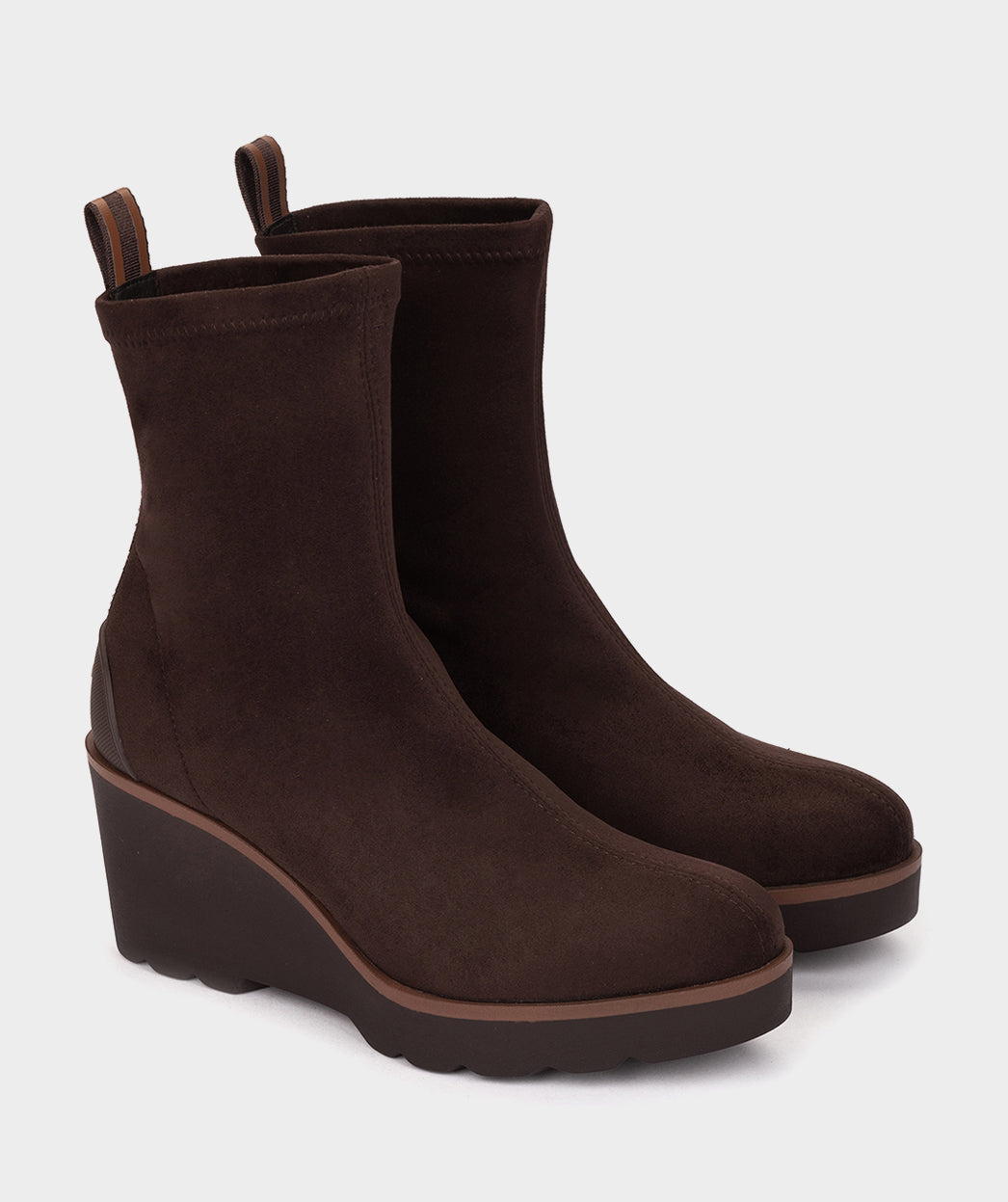 Brown suede effect elastic fabric ankle boots. HITA ankle boots are made from our popular stretch fabric for an optimal fit. This basic and timeless model will become a must-have in your wardrobe.
