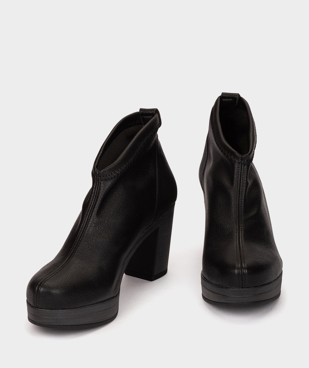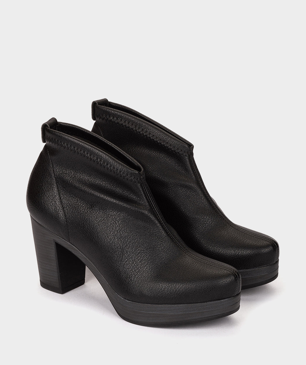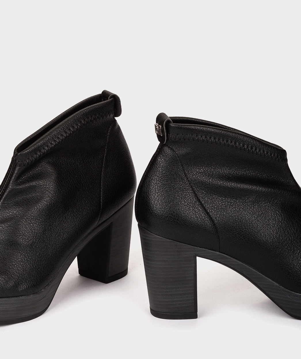 Black elastic fabric heeled ankle boots. It is a flattering and easy-to-wear model. A classic and sophisticated design that you can wear with everything.