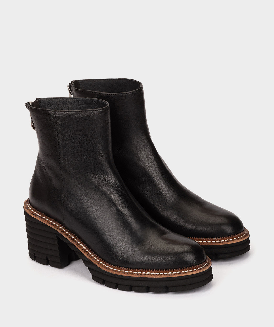 Black leather ankle boots with platform. A practical and comfortable design thanks to its silhouette and surprising lightness.