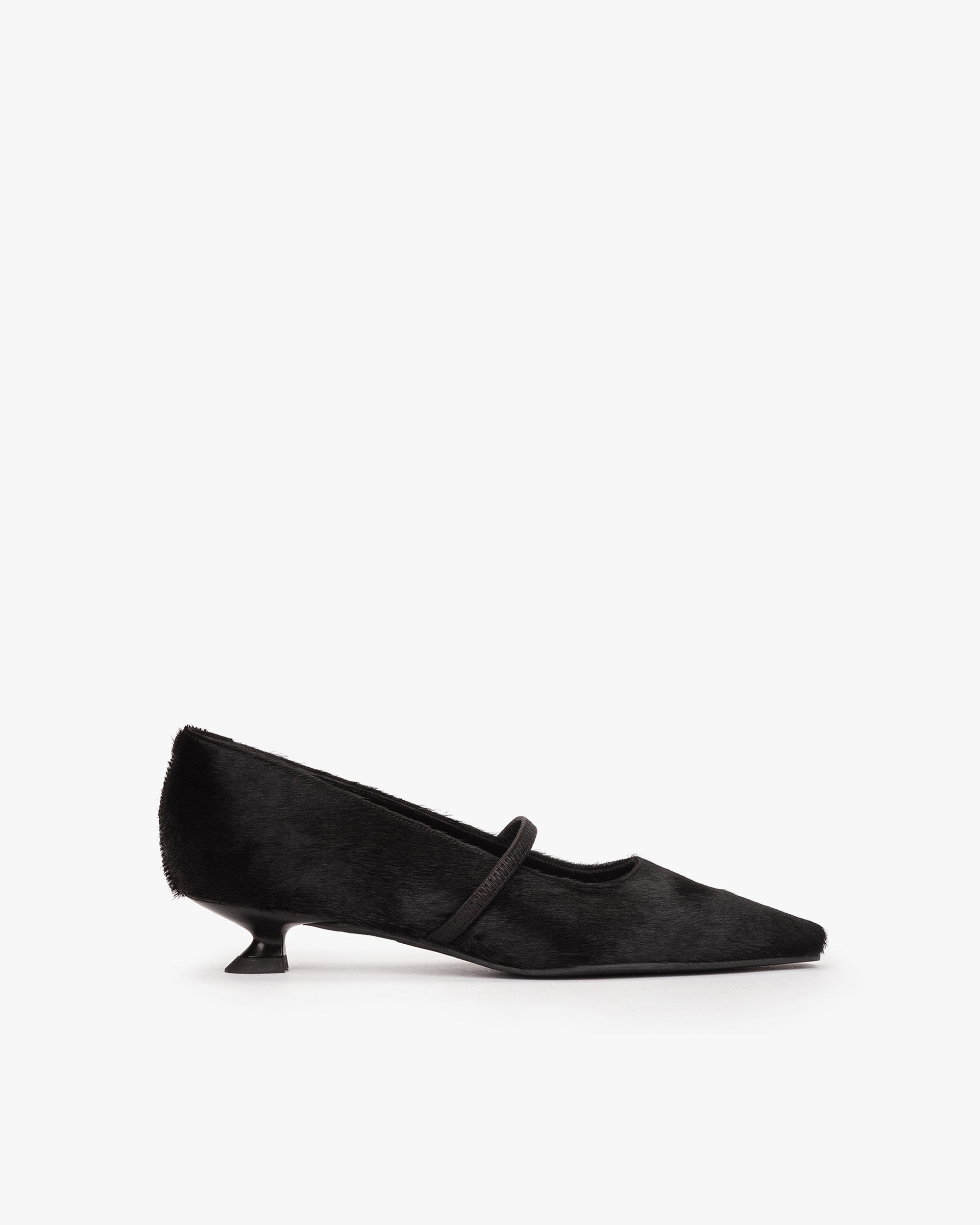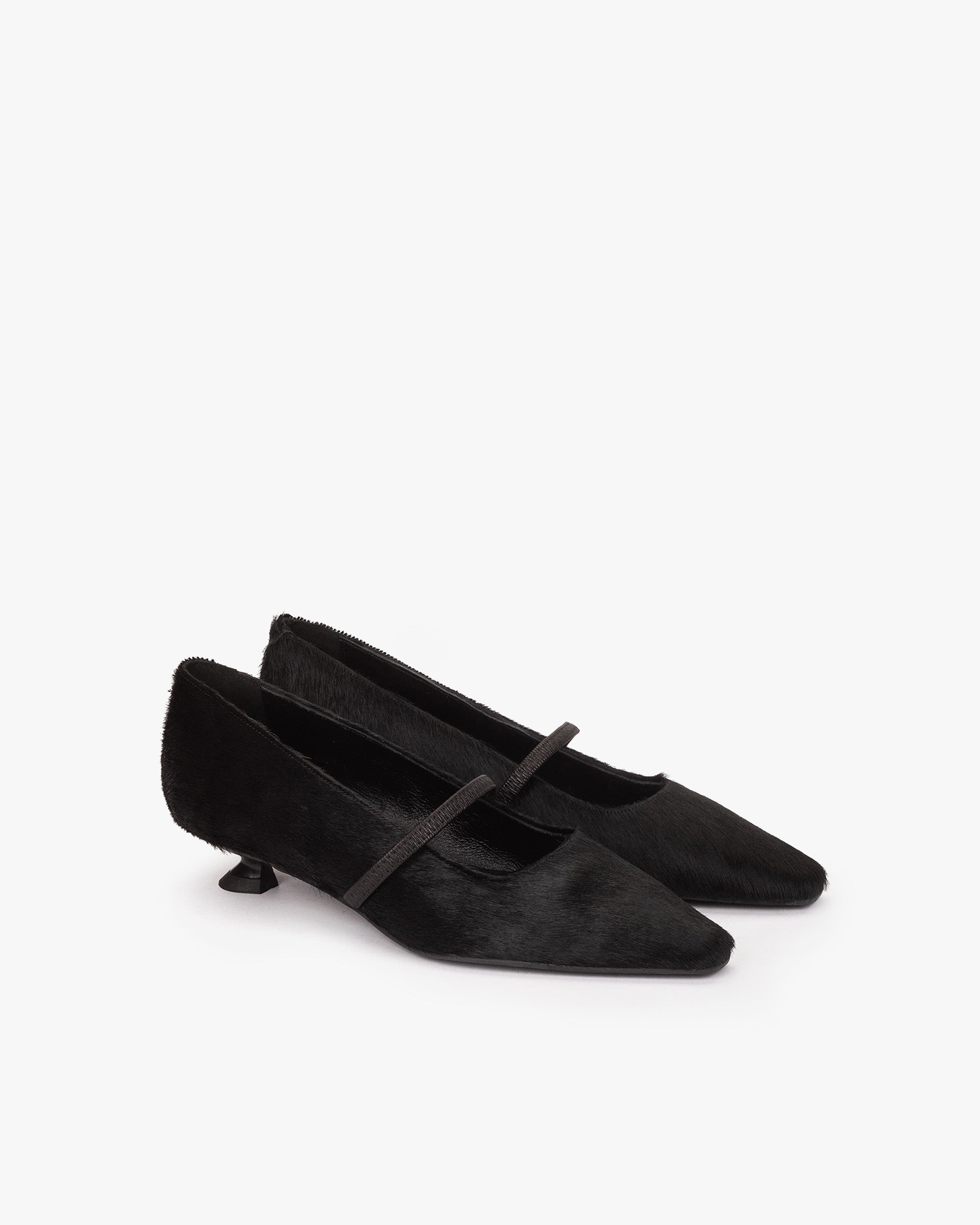 Black fur heels. A model that stands out for its versatility, suitable for both events and for a day at the office or a special appointment. The detail of the elastic band on the instep is the key to the success of the model. The heel height is perfect for comfortable wear for hours.