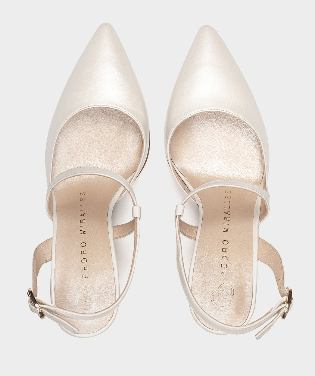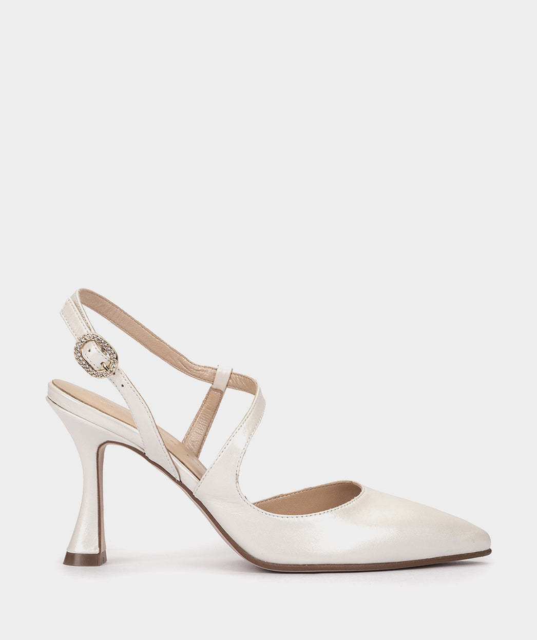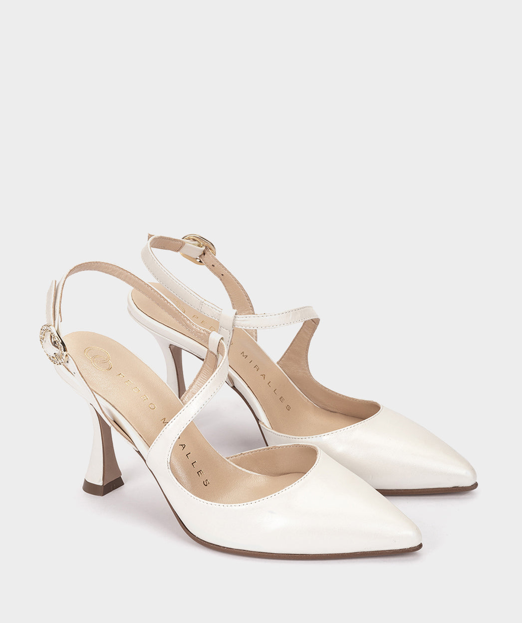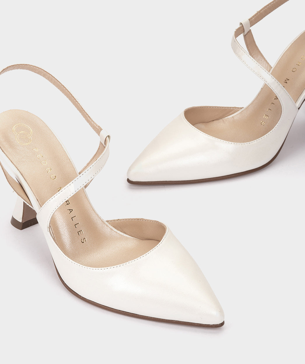 White leather heels. This is our most elegant model. The fine, sinuous lines will hug your foot, supporting it while stylizing it.