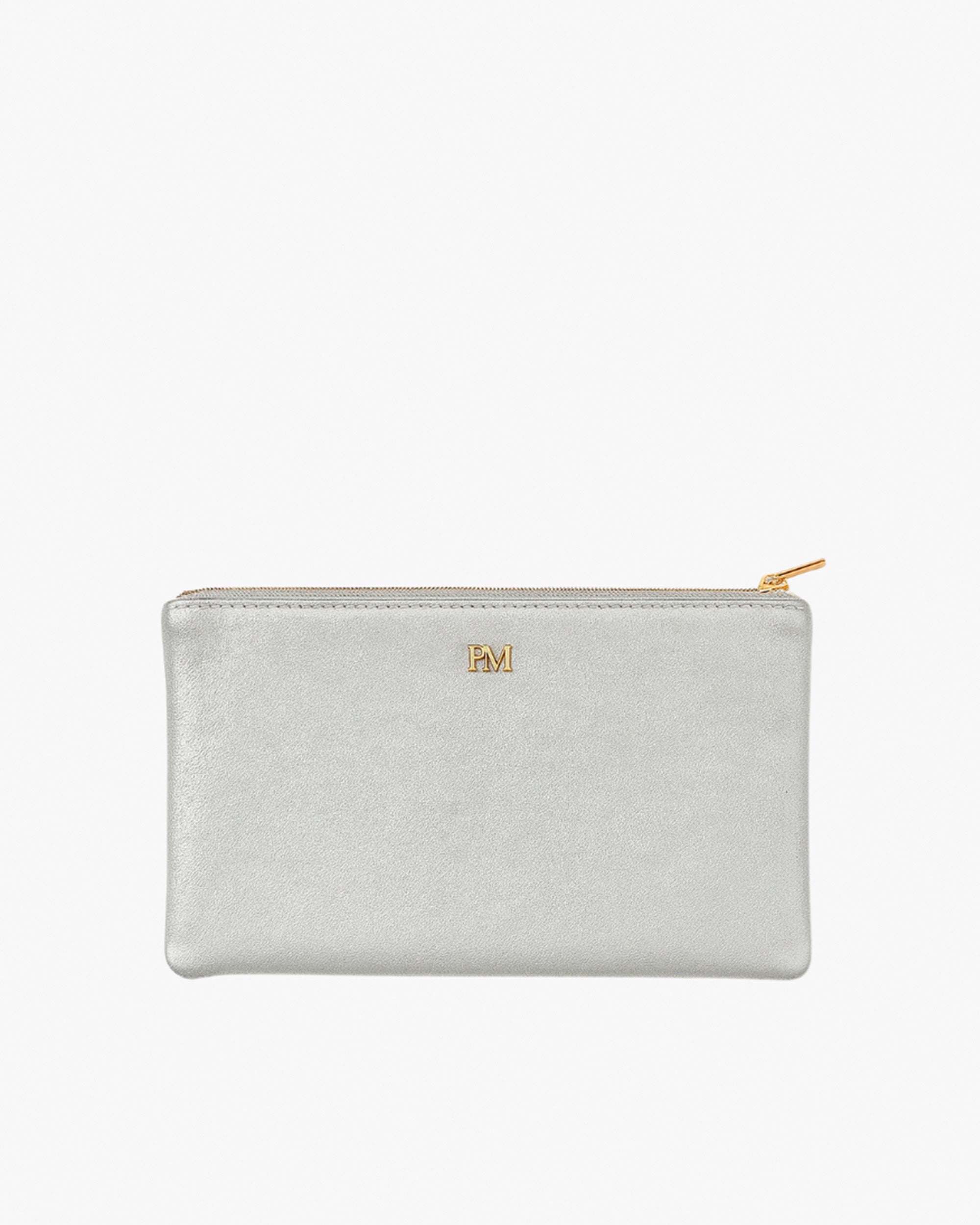 Silver metallic leather handbag. Our COVADONGA bag will become your best accessory this season. Its compact and practical design makes it a special piece with which you will want to combine all your looks. Zip closure. It has no handle.