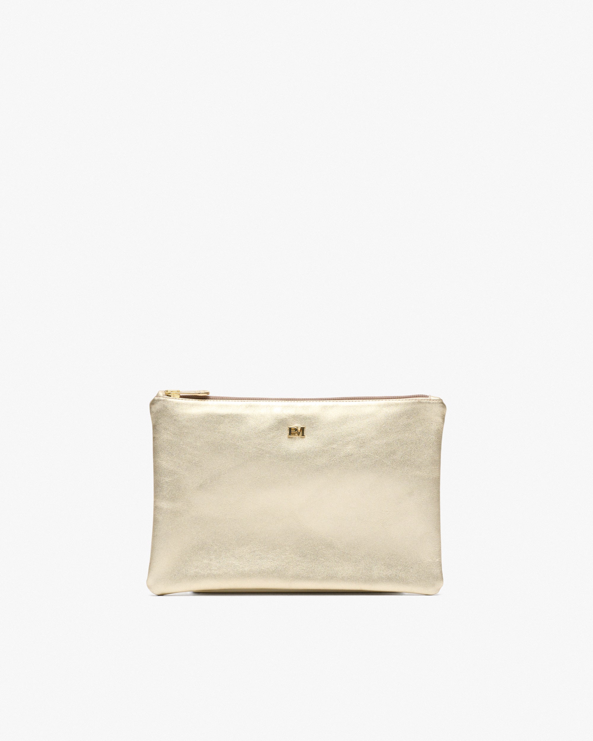 Platinum metallic leather handbag. Our COVADONGA bag will become your best accessory this season. Its compact and practical design makes it a special piece with which you will want to combine all your looks. Zip closure. It has no handle.