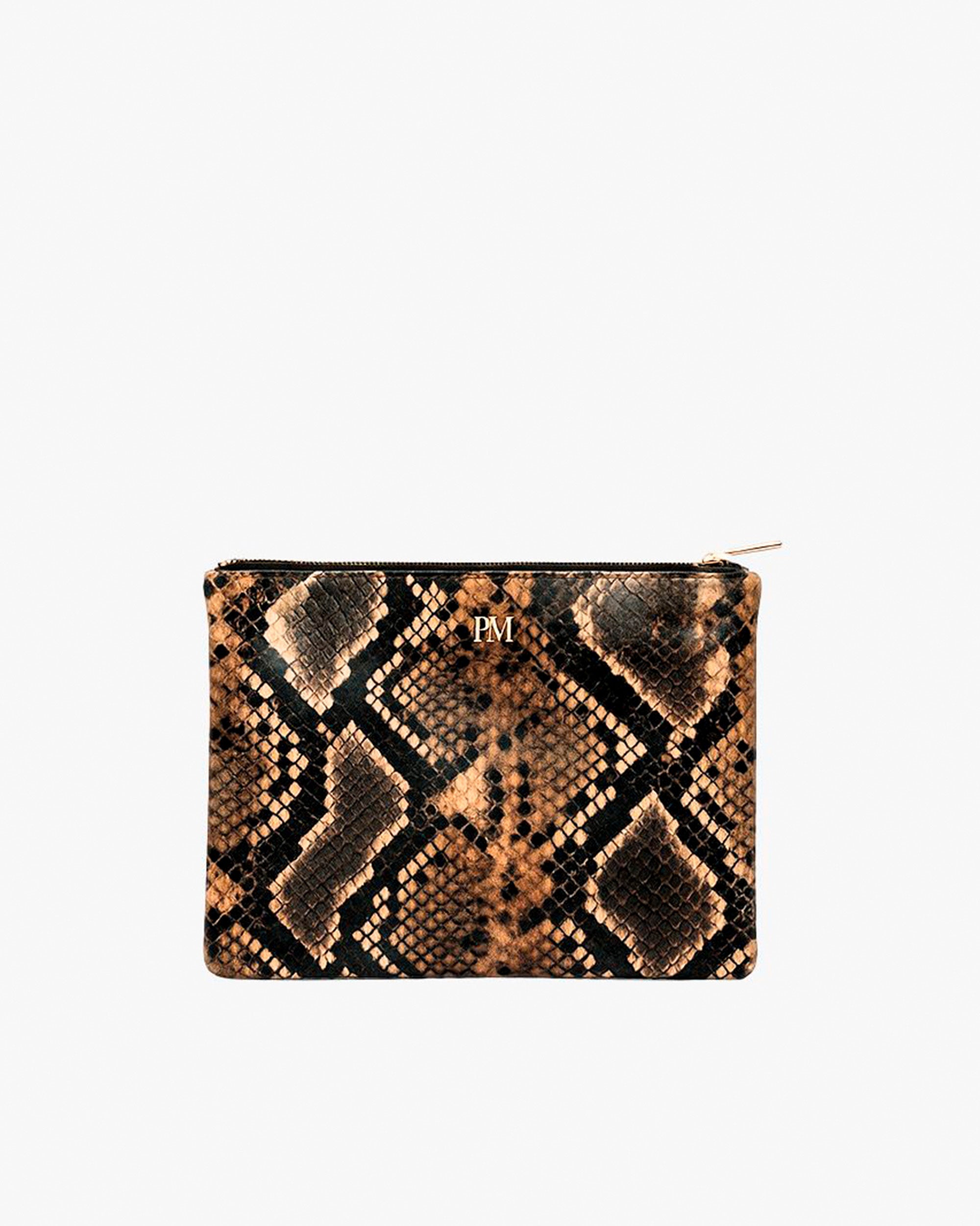 Snake effect leather handbag. Our COVADONGA bag will become your best accessory this season. Its compact and practical design makes it a special piece with which you will want to combine all your looks. Zip closure. It has no handle.