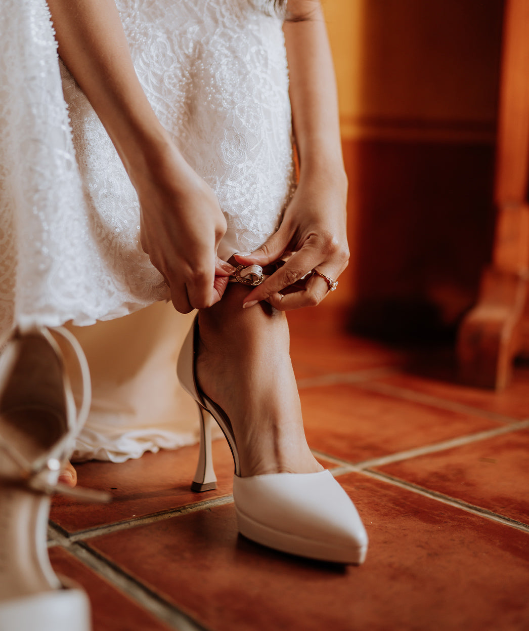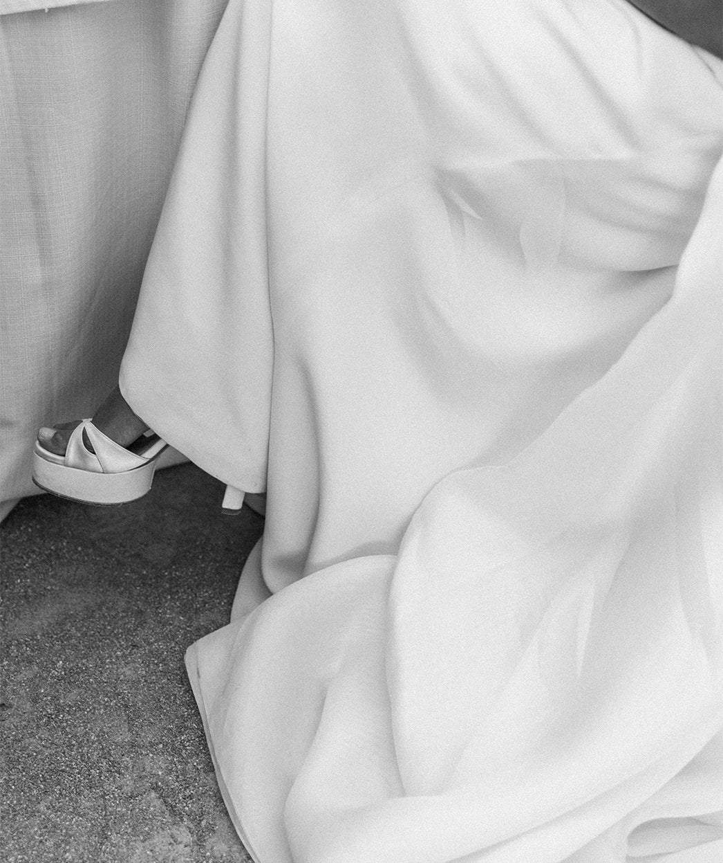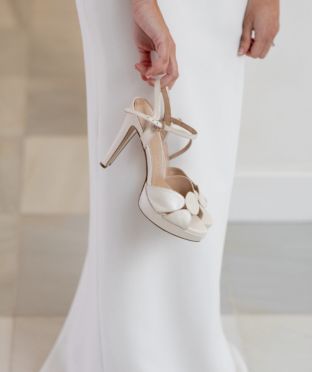 Patricia Miralles a porté le jour de son mariage les sandales qui porteraient son propre nom, PATRICIA, un modèle qu'elle a créé avec son père, Pedro Miralles. Concevoir ensemble les chaussures de son mariage a été un moment unique et spécial, le processus s'est transformé en une expérience qu'ils n'oublieront jamais. "J'avais clairement envie de profiter de ce processus avec mon père, qui était encore plus enthousiaste que moi. C'était le secret le mieux gardé du bureau."