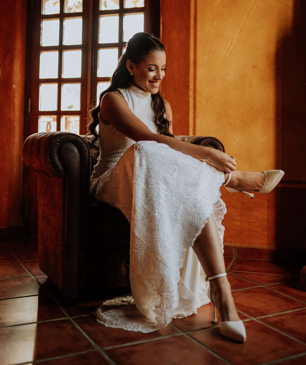 "Quelques minutes avant de marcher vers l'autel, j'ai ressenti des frissons d'émotion et mon cœur battait à tout rompre. Une partie de moi n'arrivait pas à croire que le jour dont je rêvais tant était enfin arrivé et que j'allais enfin dire 'oui' à l'amour de ma vie." - Sara