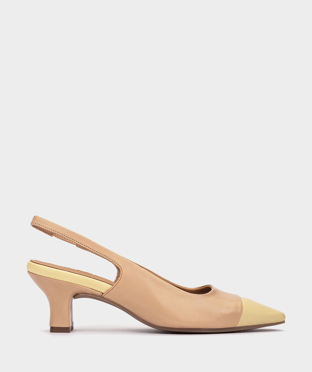 Chaussures à talons bas et bout pointu en cuir. Le design exceptionnel et élégant des chaussures Guetaria combine deux couleurs de la saison, ajoutant ainsi une touche de sophistication à n'importe quel look. Ces chaussures sont confortables, polyvalentes et sûres à utiliser tout au long de la journée.