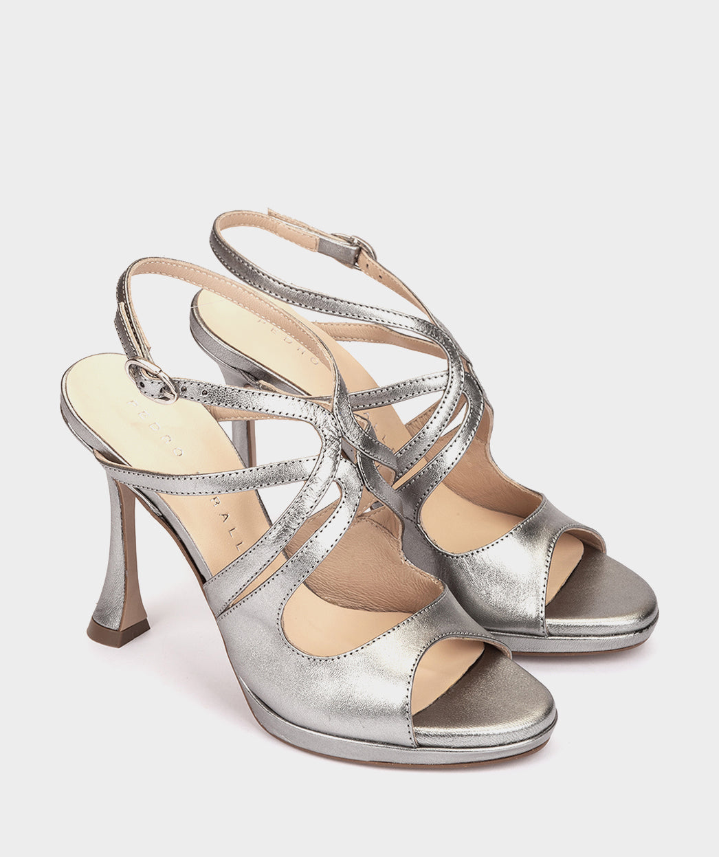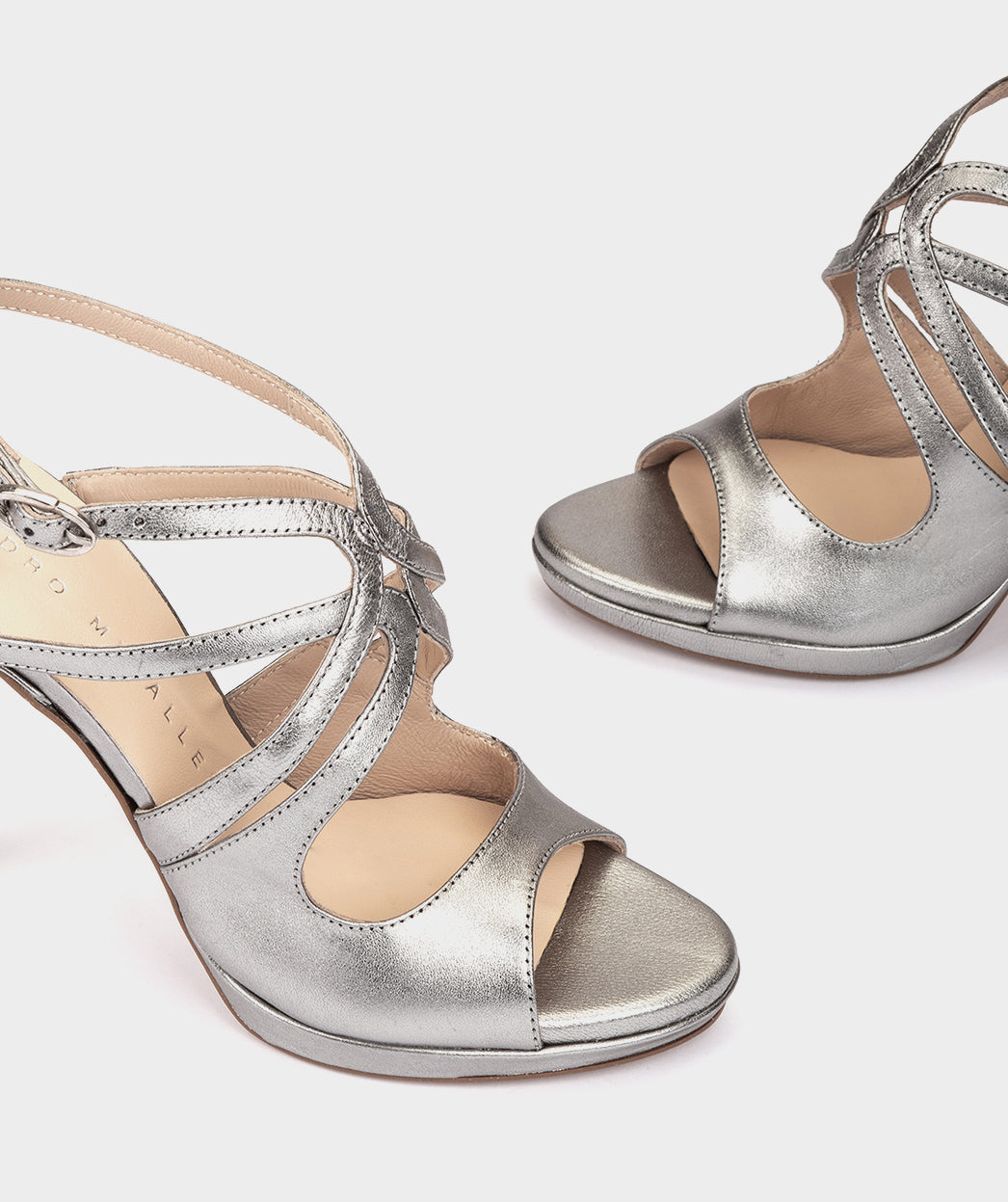 Sandales à talons en cuir métallisé. Fabriqué avec des bandes de différentes tailles qui se croisent pour offrir un maintien optimal. Vous serez le plus élégant de vos événements.