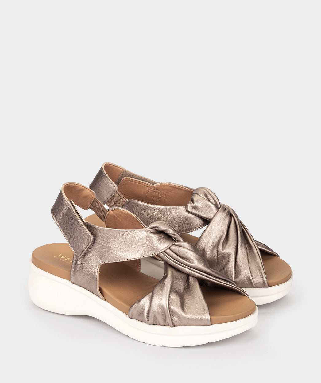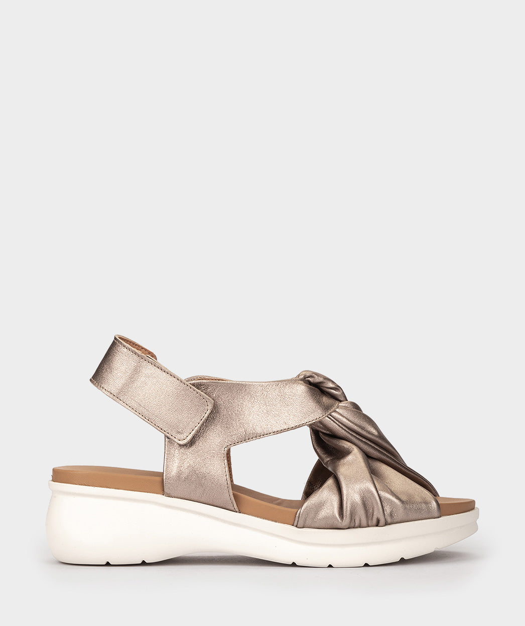 Sandales en cuir métallisé couleur platine. Un design alliant modernité et confort. Il est doté d'une fermeture velcro pour un ajustement confortable. Modèle de la collection Weekend de Pedro Miralles.