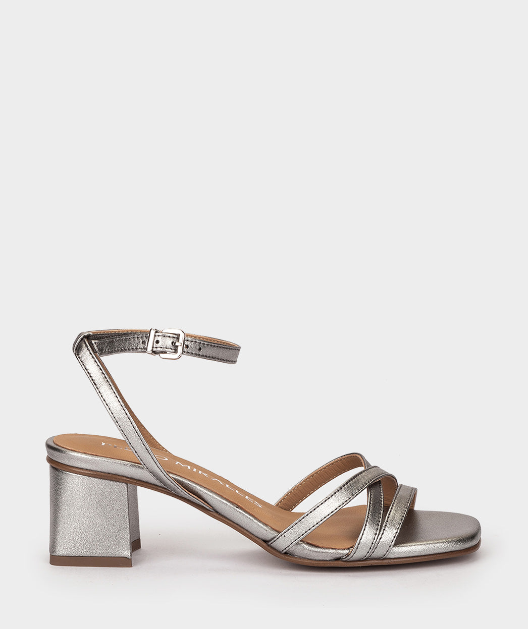 Sandales à talons en cuir métallisé couleur acier. MARINES est née comme les sandales les plus polyvalentes de la saison. La hauteur de son talon est parfaite pour le porter confortablement toute la journée. Un modèle conçu pour être porté lors d'événements et au quotidien, la polyvalence est sa principale caractéristique.