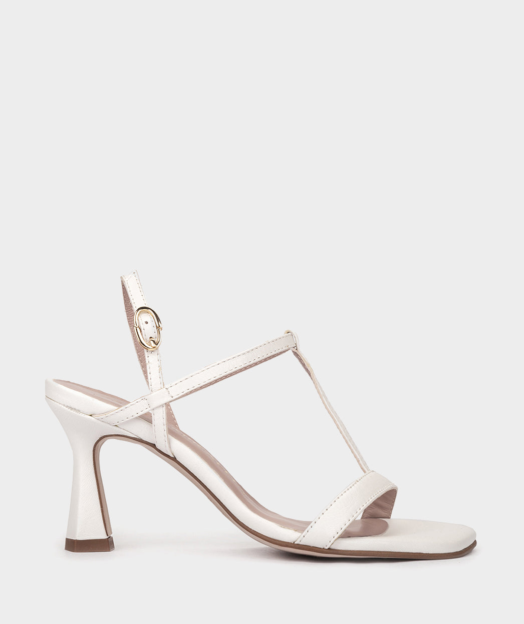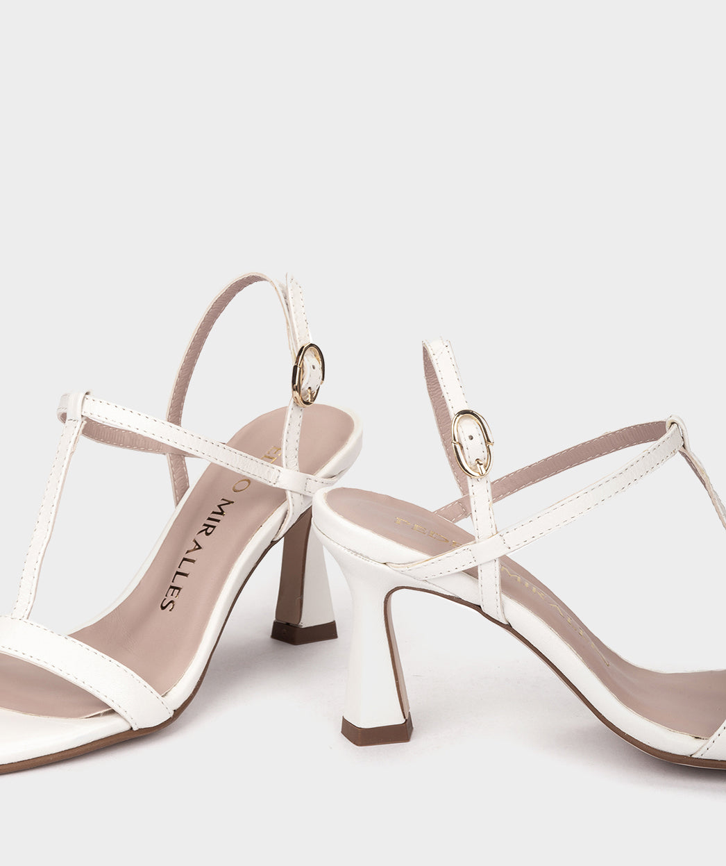 Sandales à talons en cuir blanc. Un design sophistiqué et minimaliste, moins c'est plus avec ce modèle parfait pour ceux qui optent pour l'élégance.